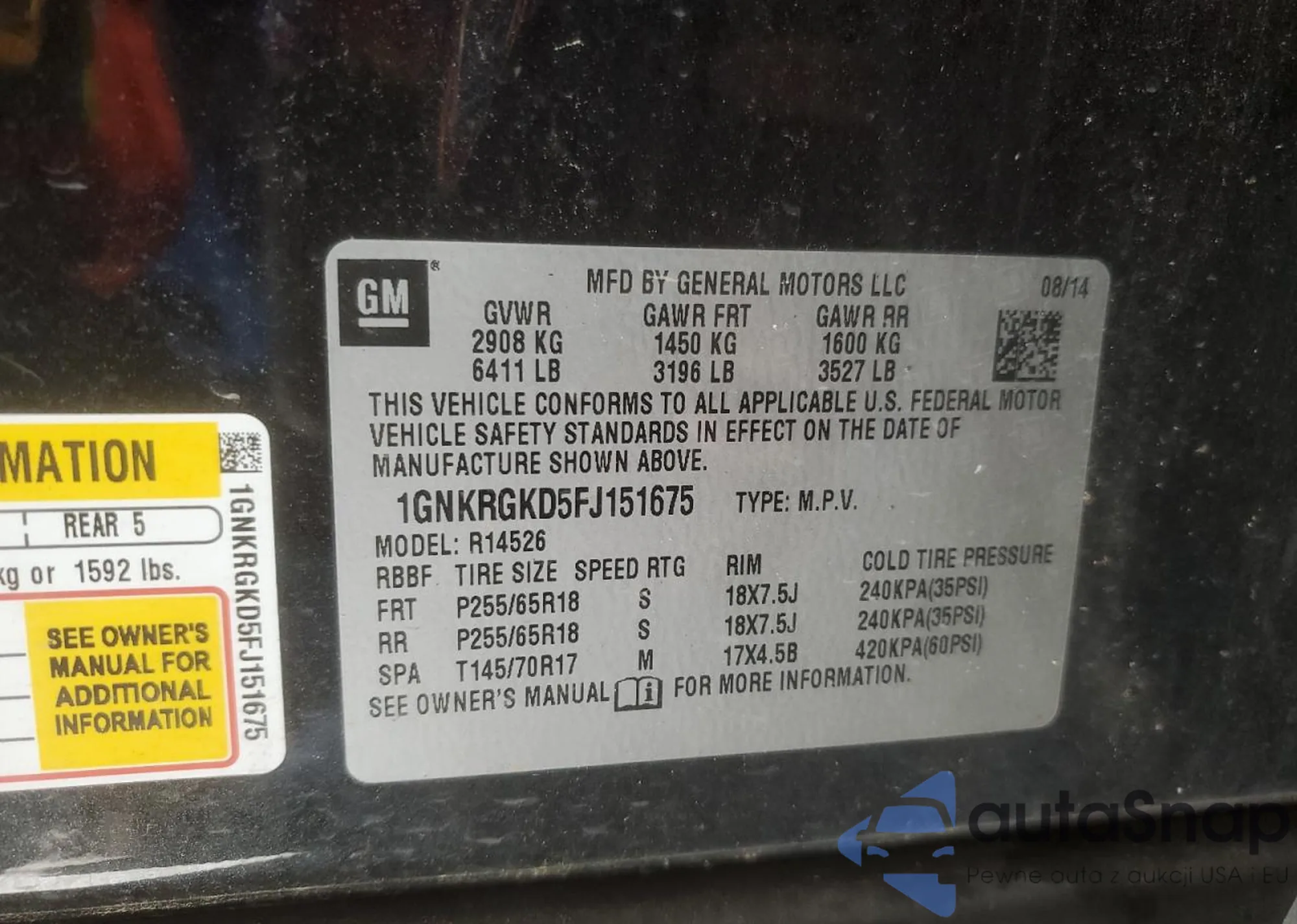 • VIN 1GNKRGKD5FJ151675