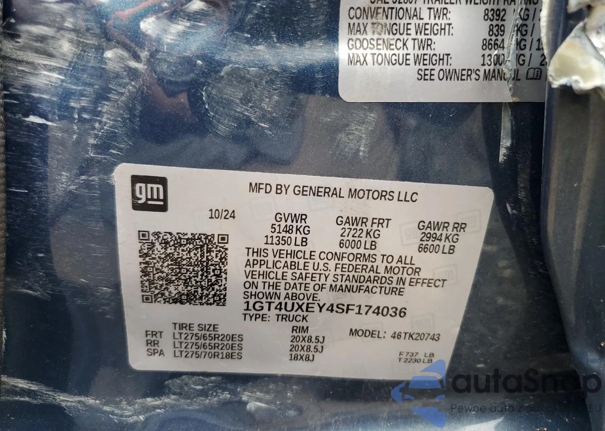 • VIN 1GT4UXEY4SF174036