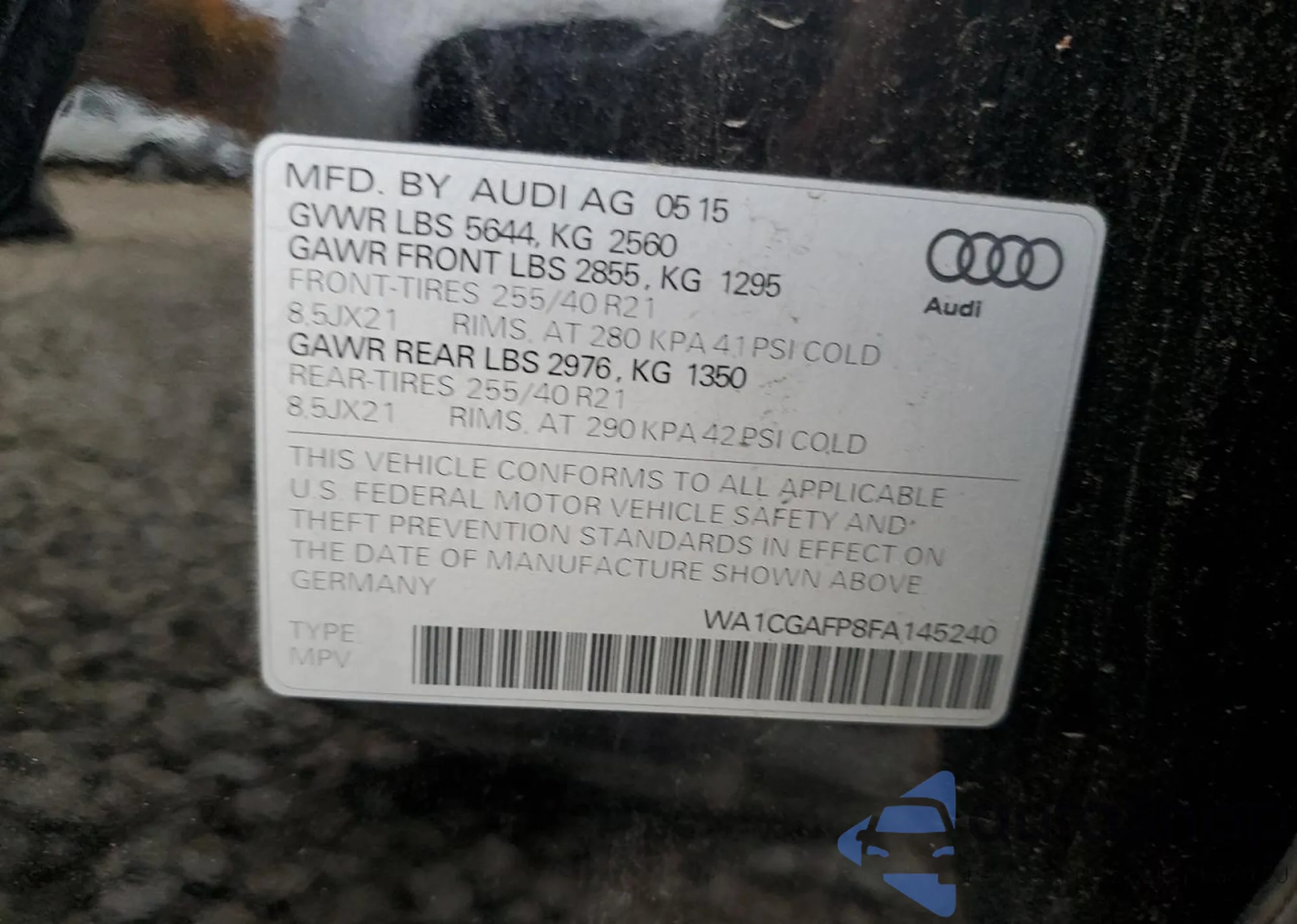 LOT: 89825885 VIN: WA1CGAFP8FA145240