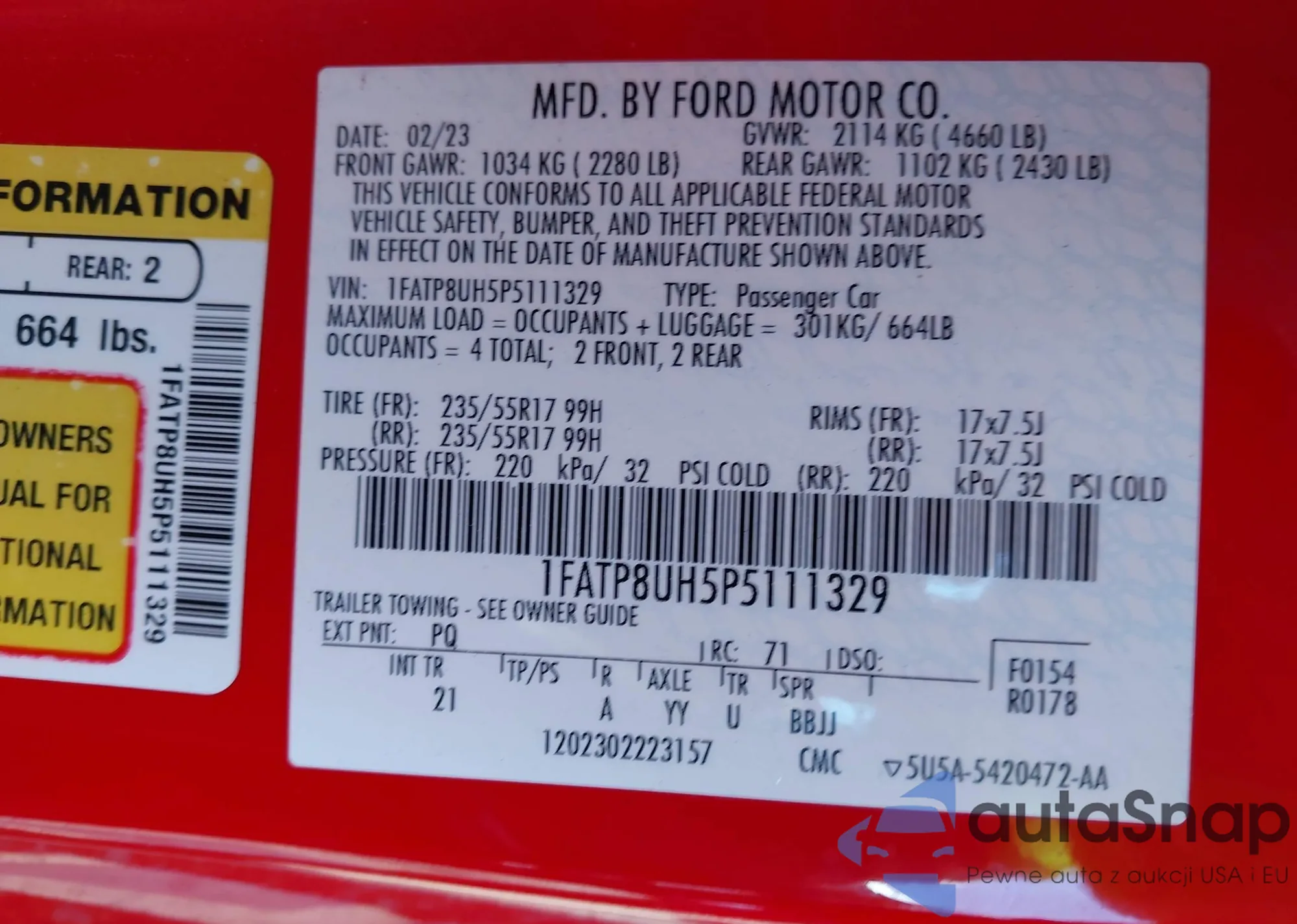 LOT: 85206285 VIN: 1FMSU43P03EC54498