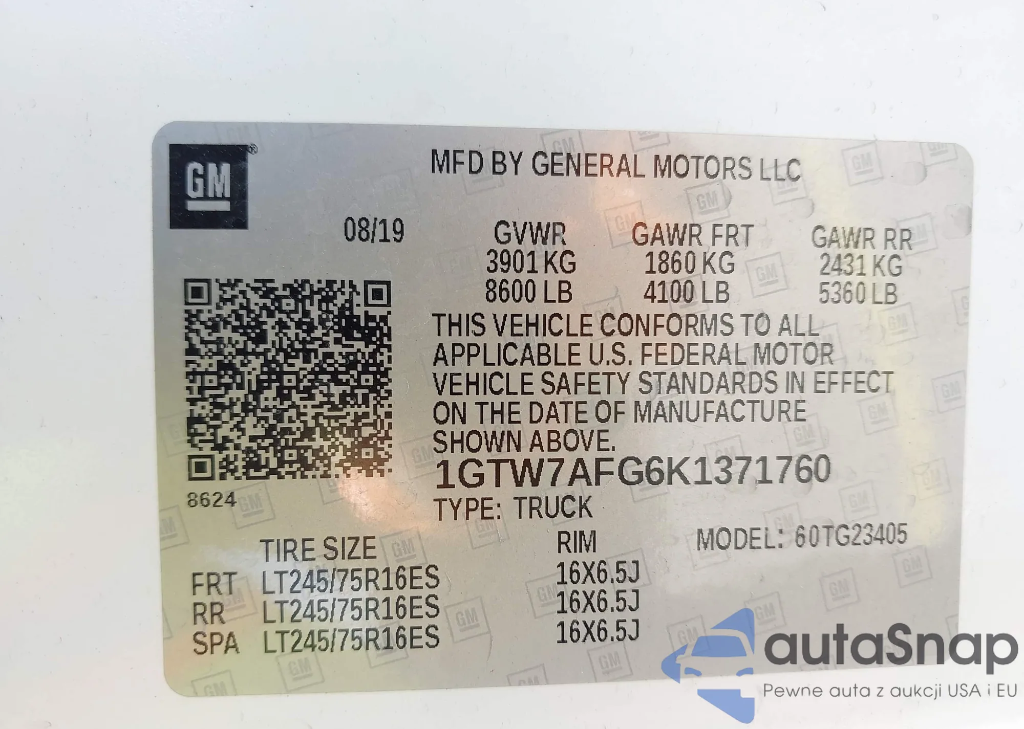 • VIN 1GTW7AFG6K1371760