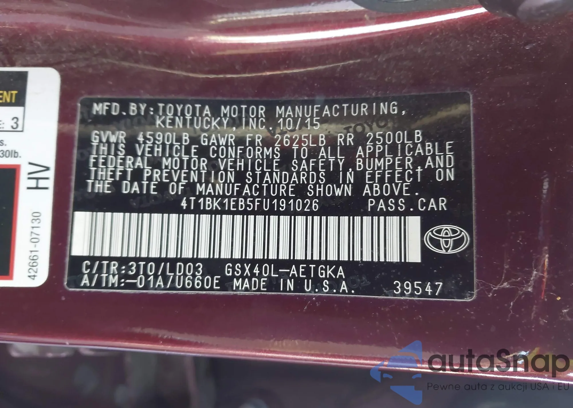 LOT: 43673061 VIN: 4T1BK1EB5FU191026