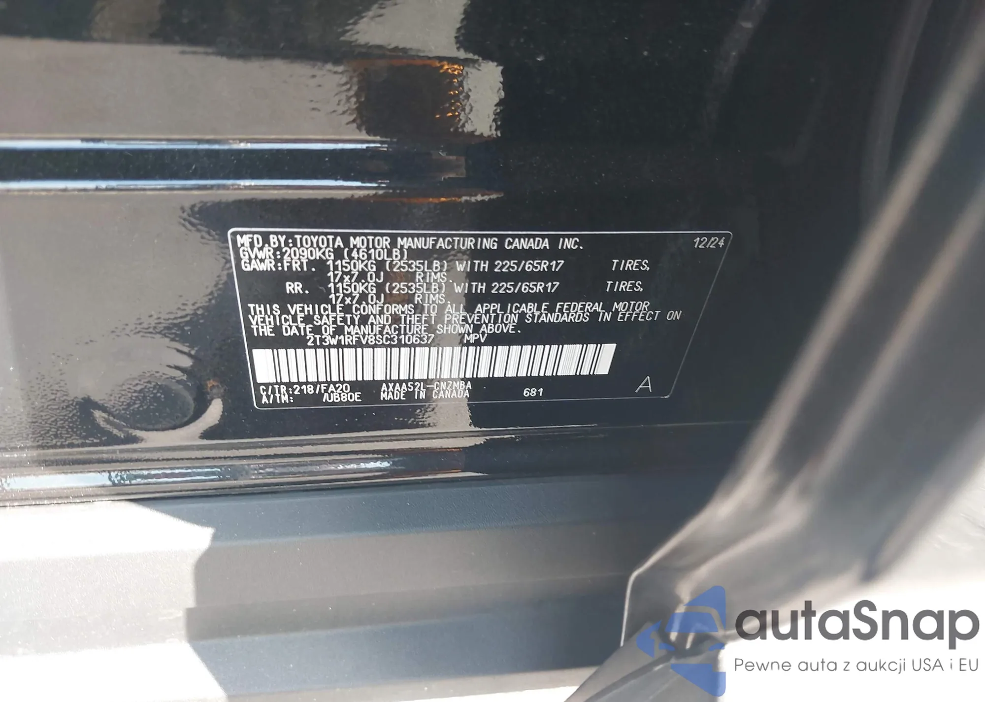 LOT: 43496307 VIN: 2T3W1RFV8SC310637