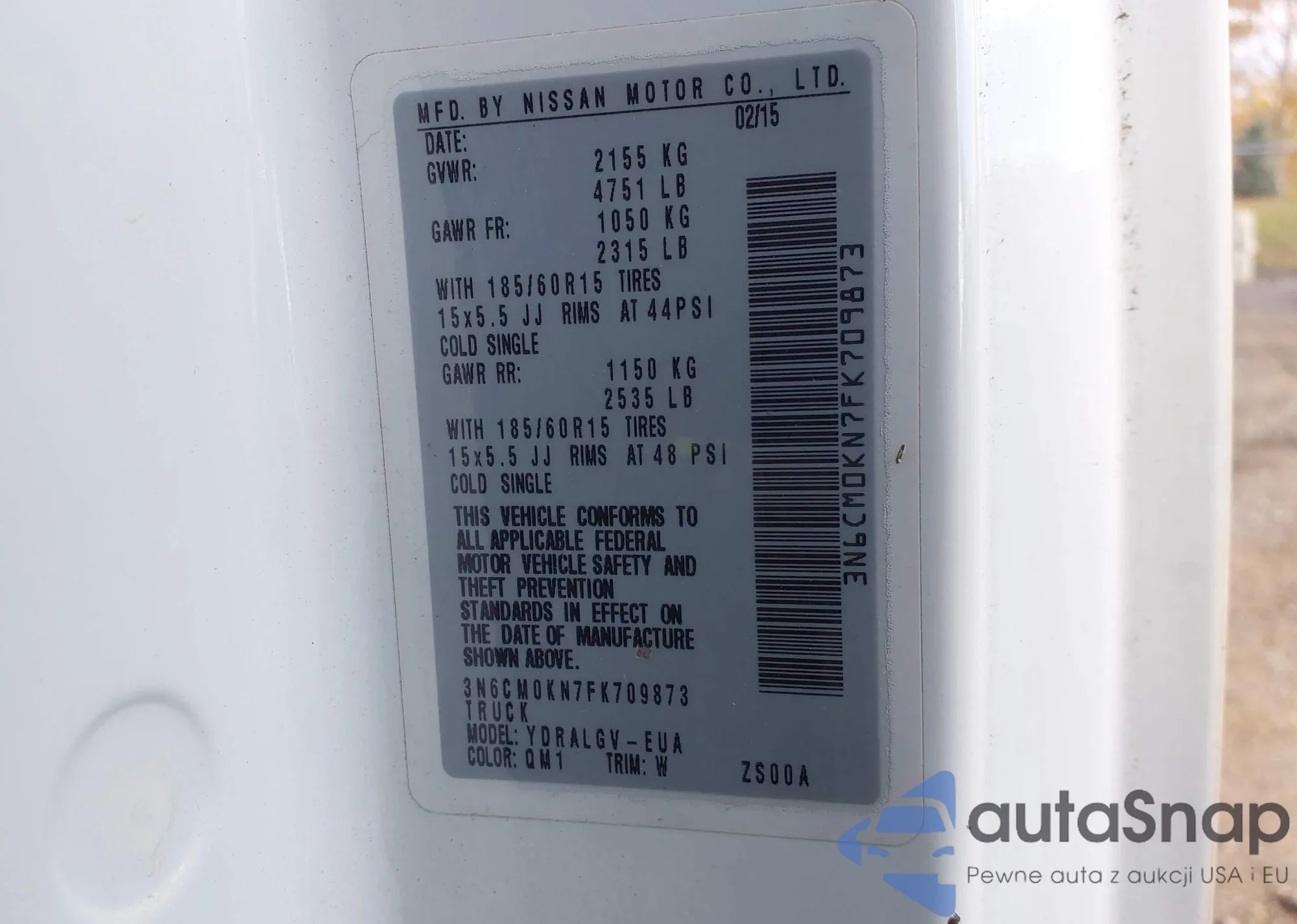 LOT: 43526515 VIN: 3N6CM0KN7FK709873