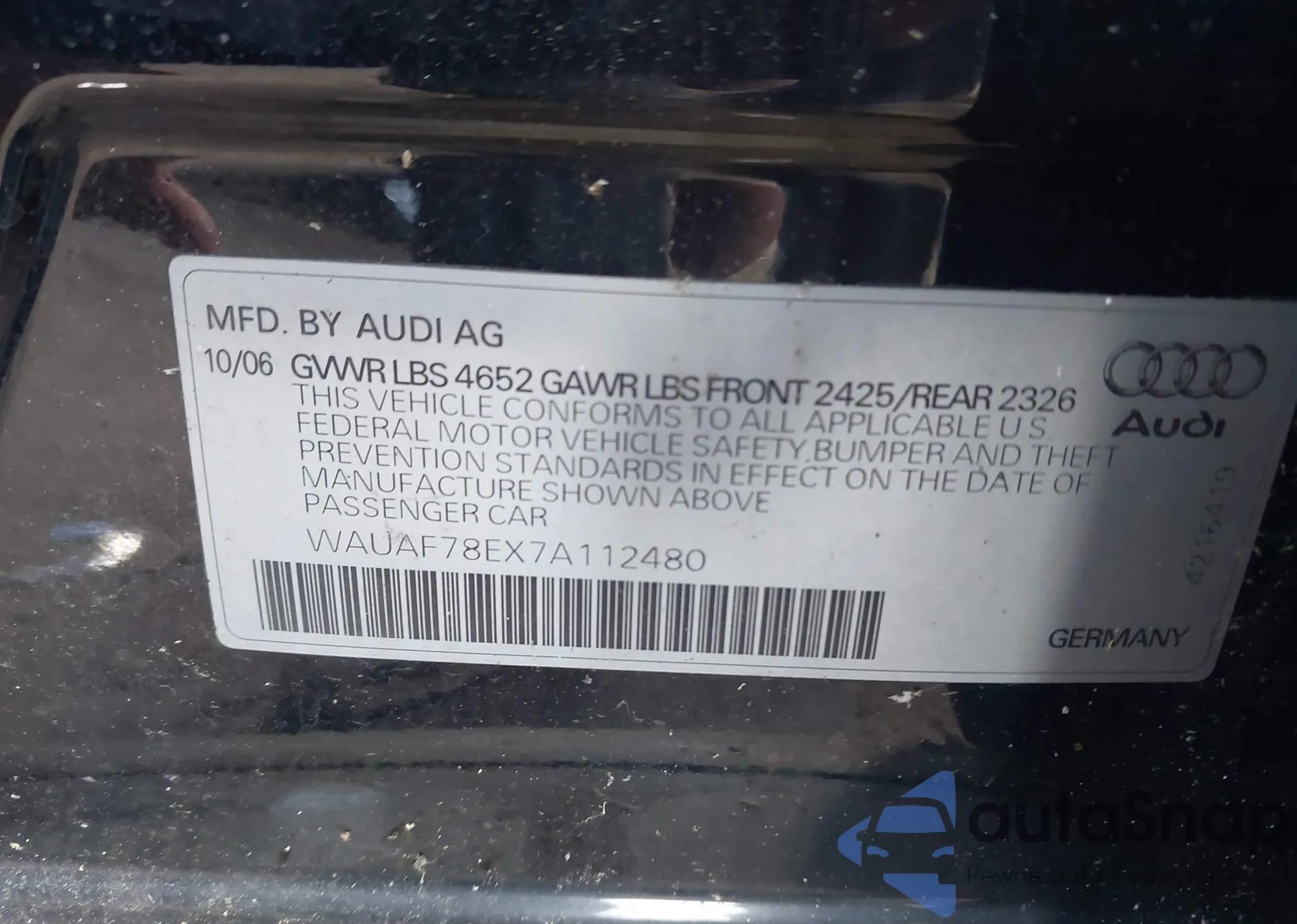 LOT: 43536790 VIN: WBAVA33578FV66853