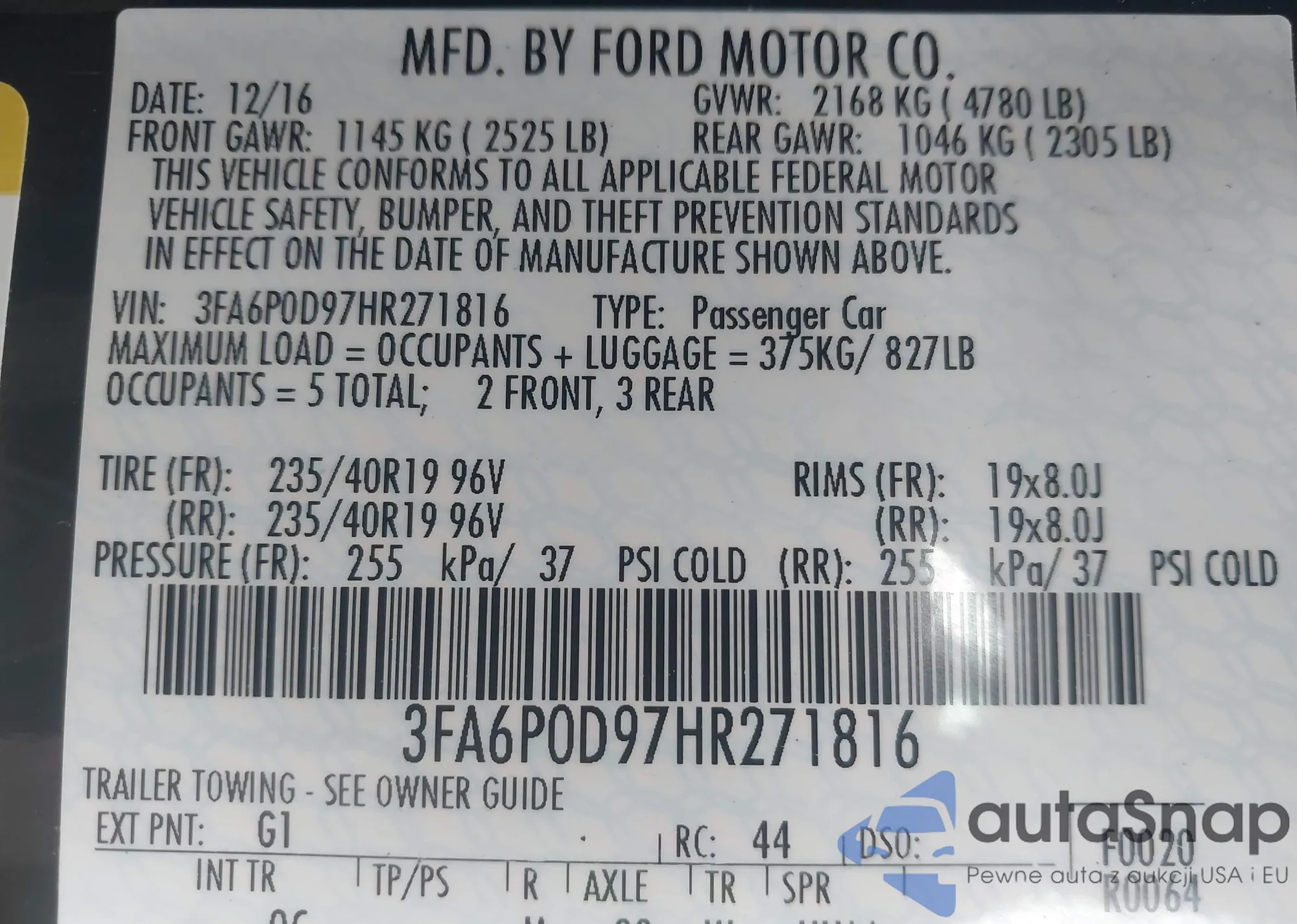 • VIN 5TFCZ5AN7LX217468