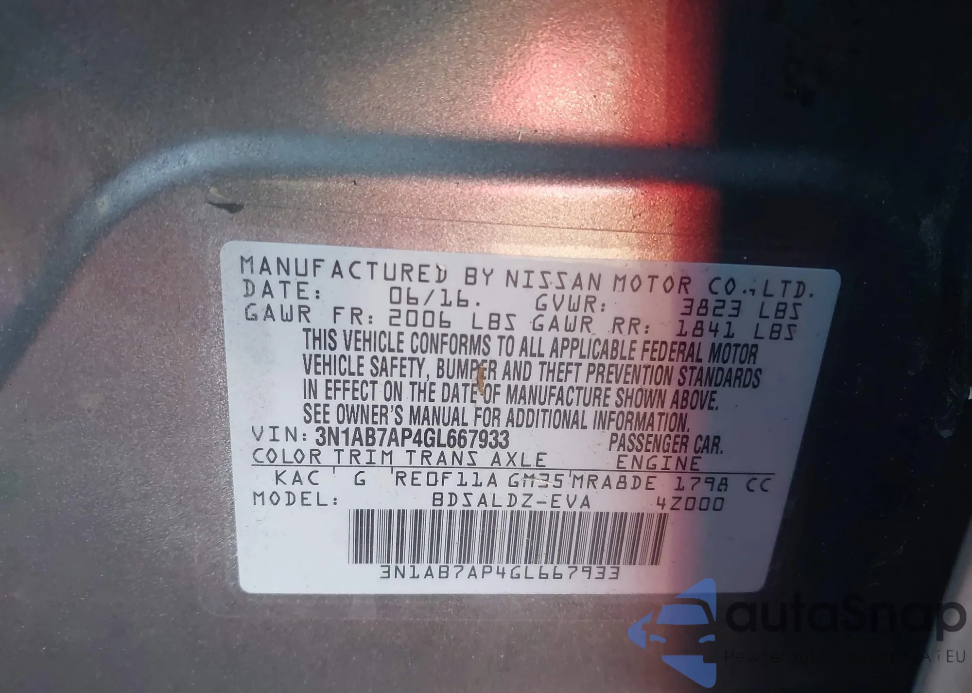 • VIN 3N1AB7AP4GL667933