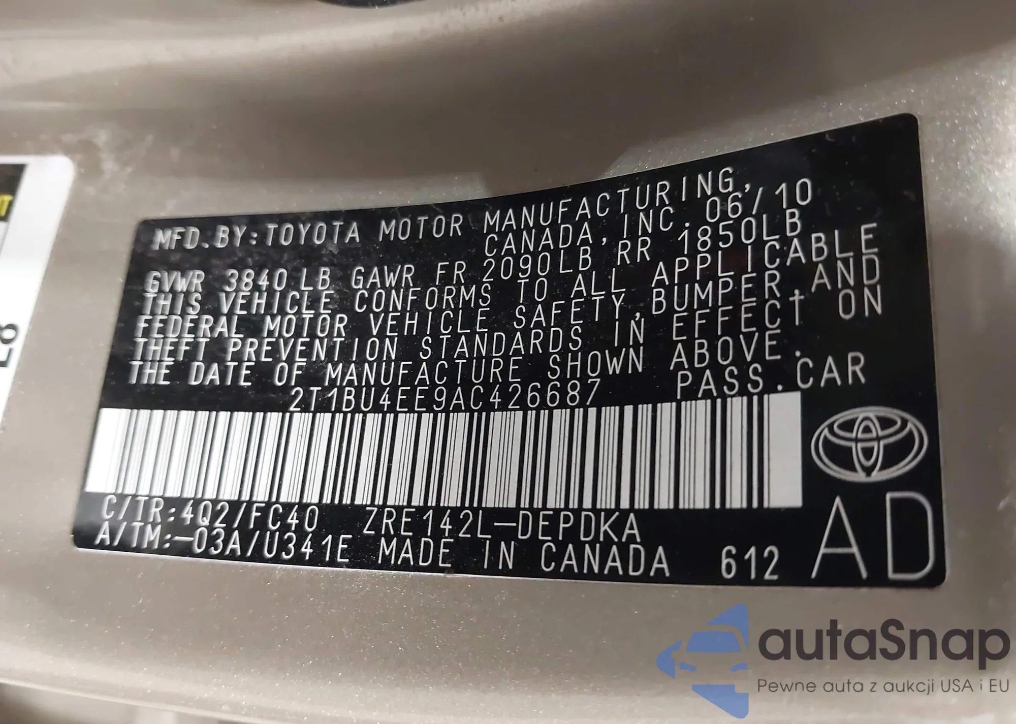 • VIN 1N4AL2AP3AN413267
