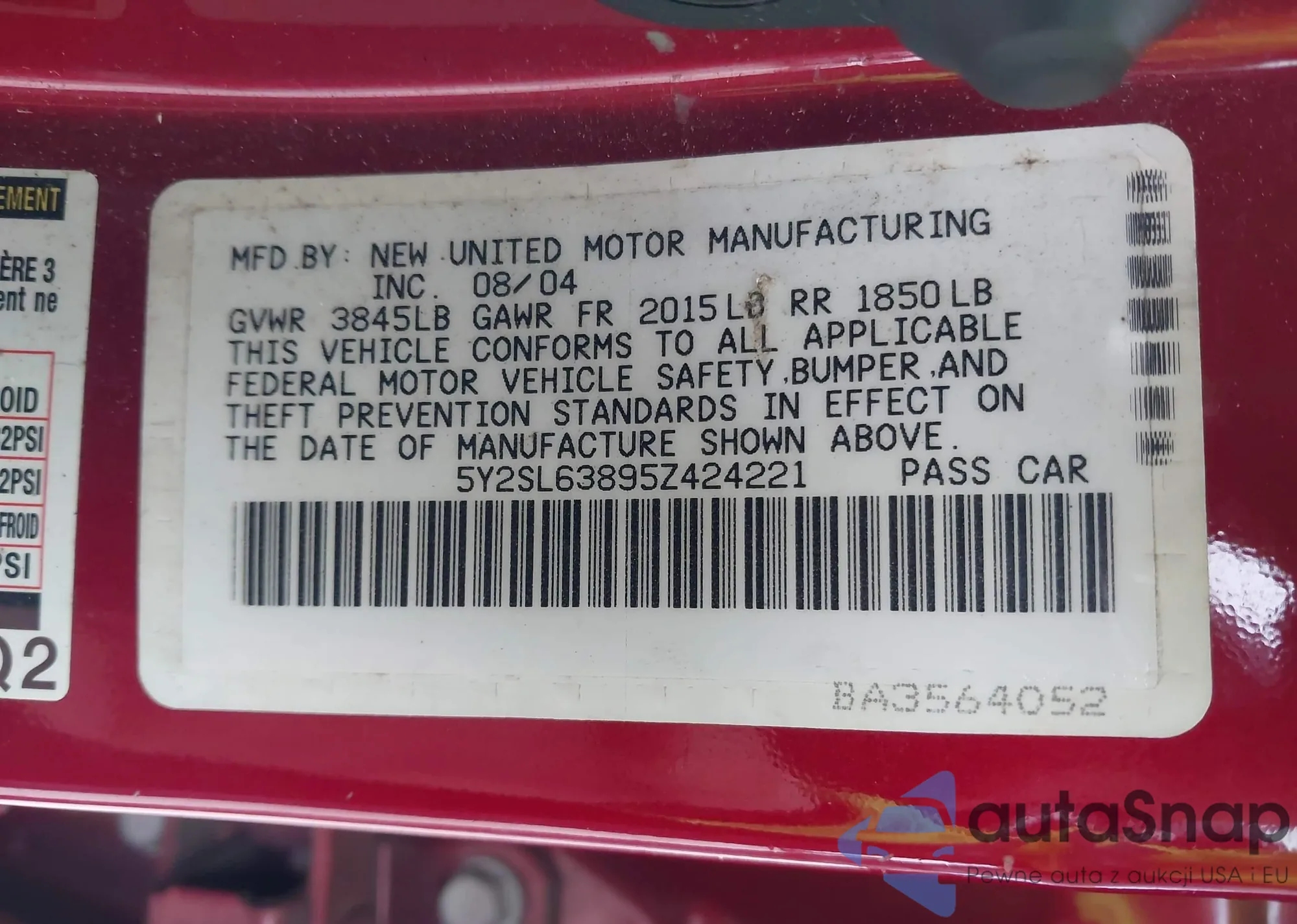 LOT: 43663617 VIN: 3FAHP0HA5BR202370