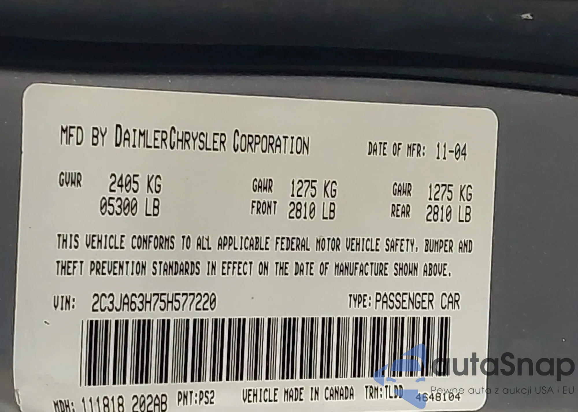 LOT: 43645105 VIN: 1C3CC4FB2AN207616