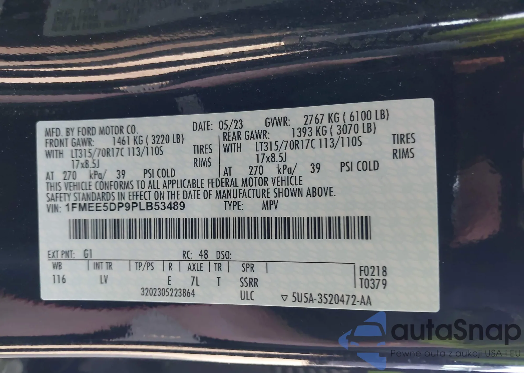 • VIN 1FMEE5DP9PLB53489