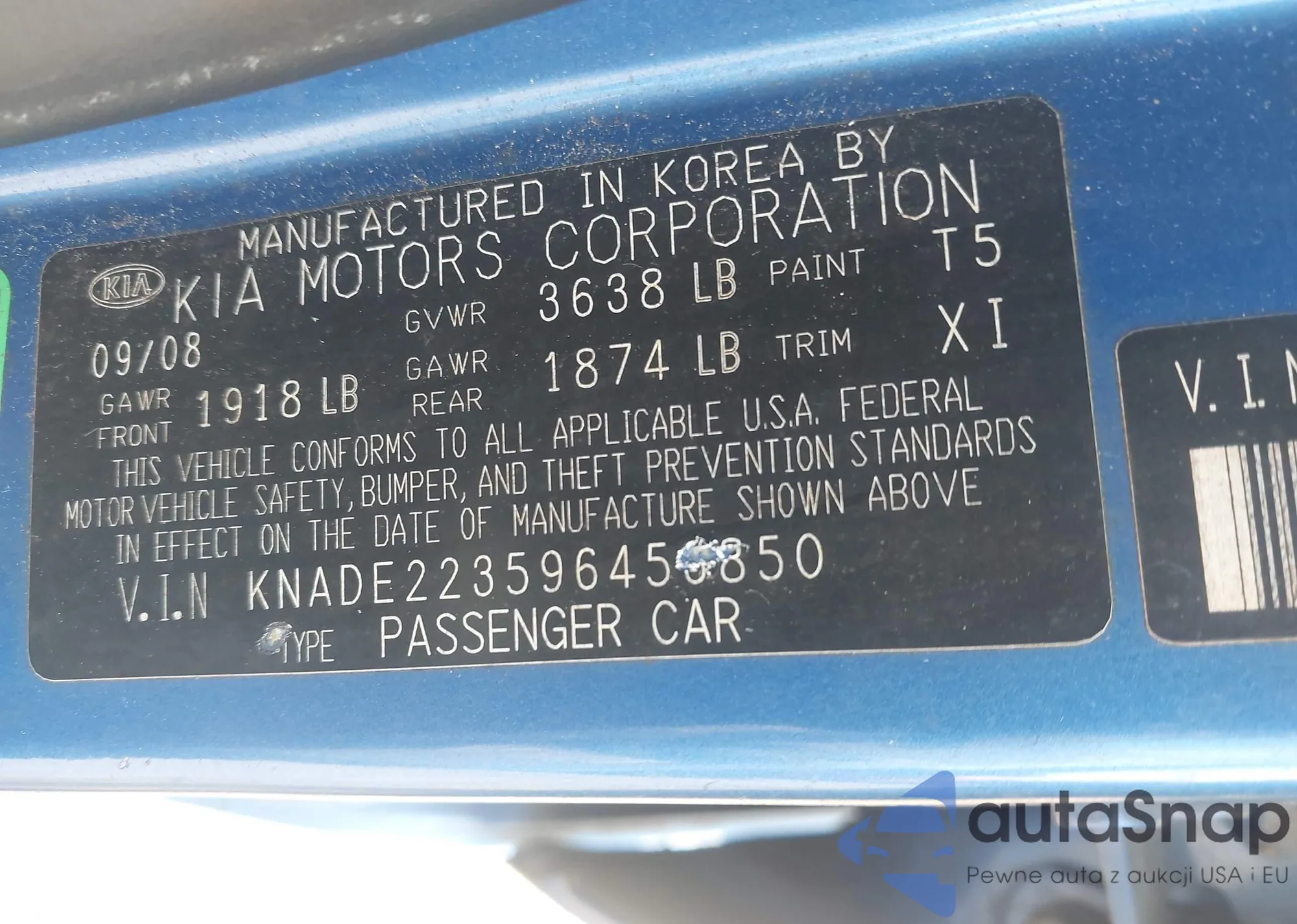 LOT: 43255869 VIN: KNADE223596456850