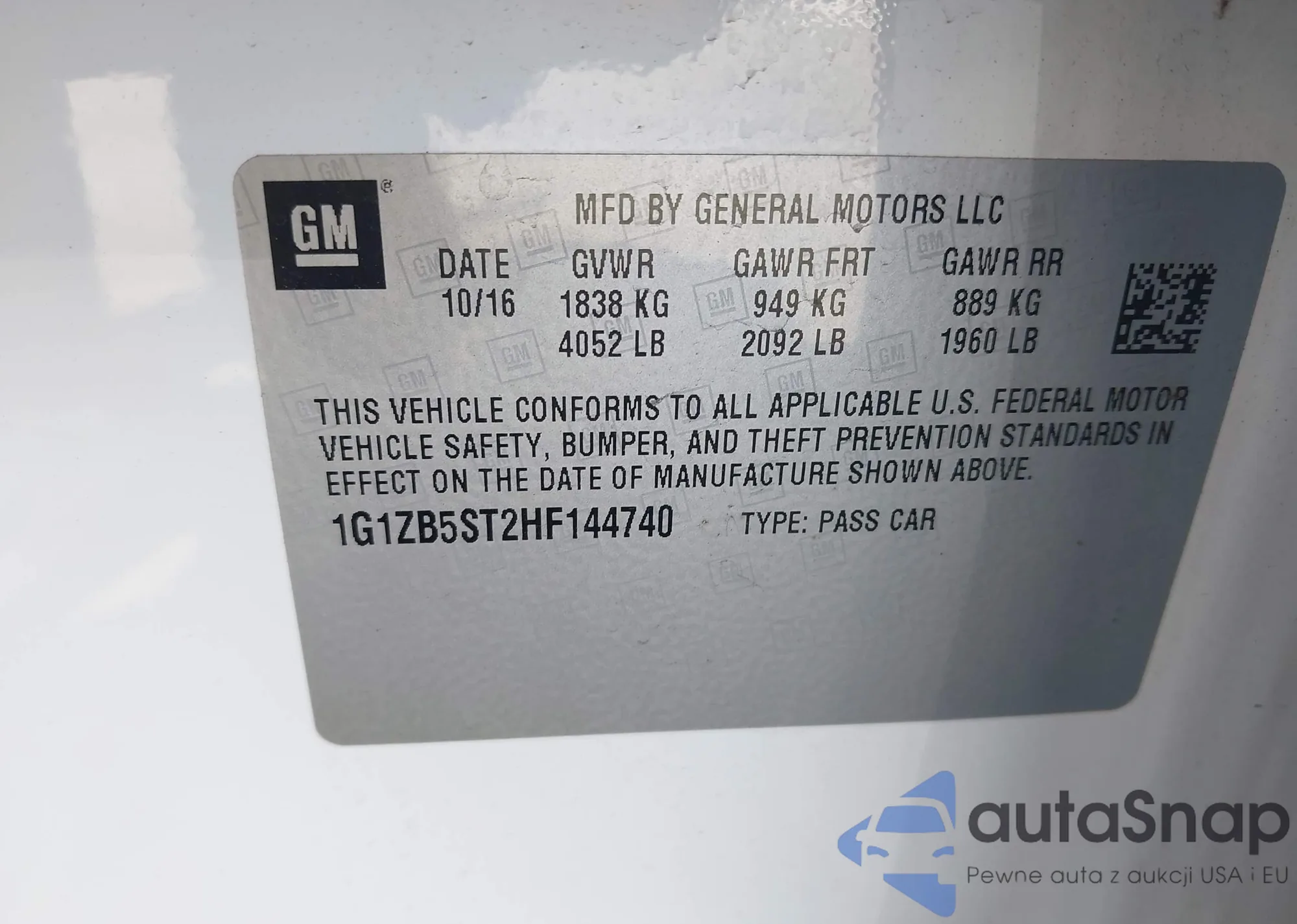 • VIN 1G1ZB5ST2HF144740