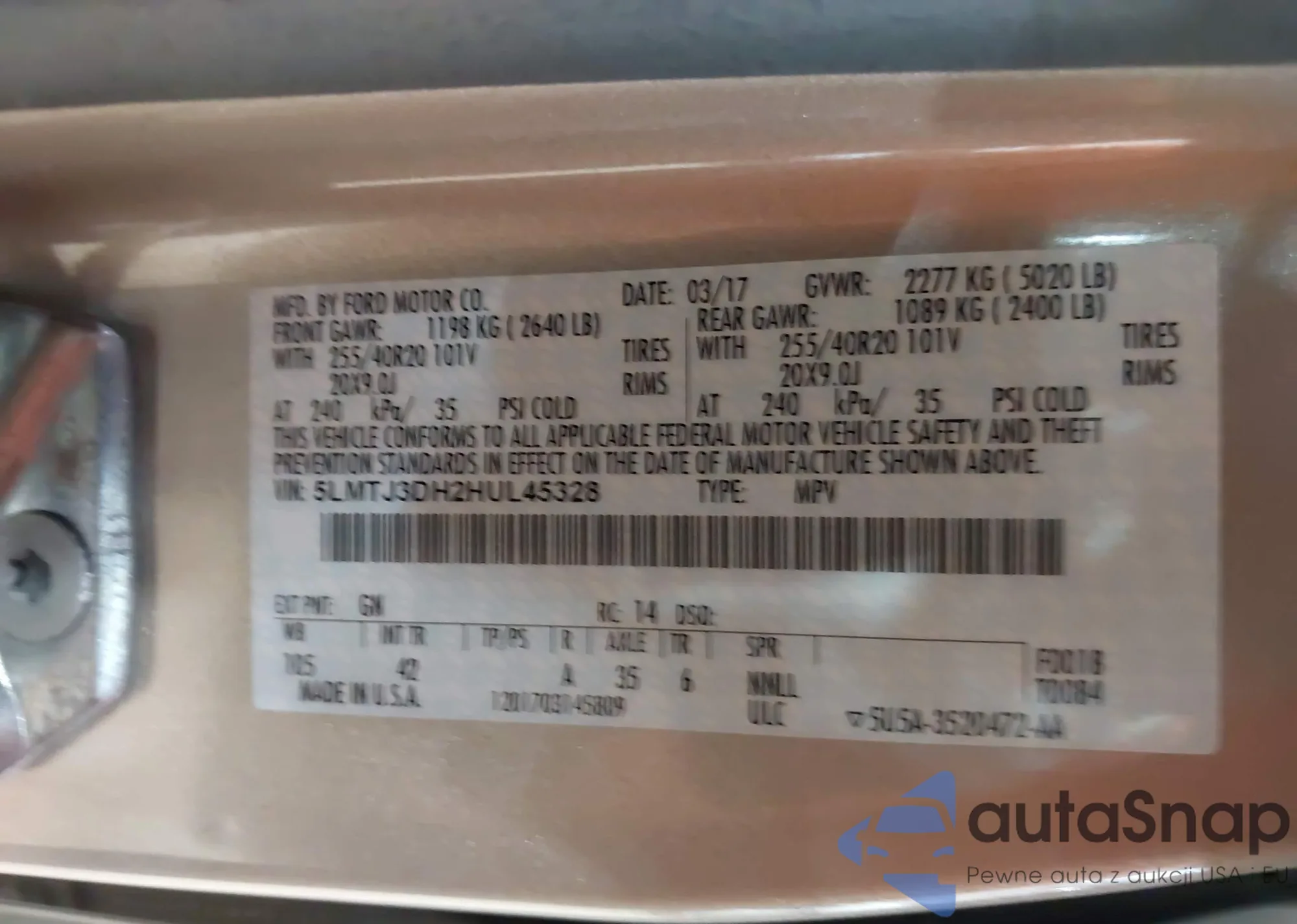 LOT: 43495070 VIN: 5LMTJ3DH2HUL45328