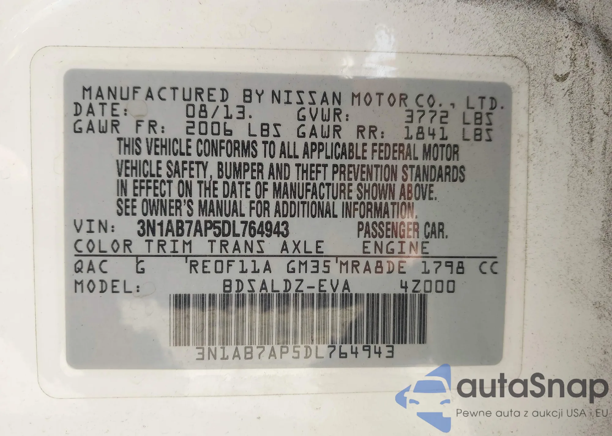 • VIN 3N1AB7AP5DL764943