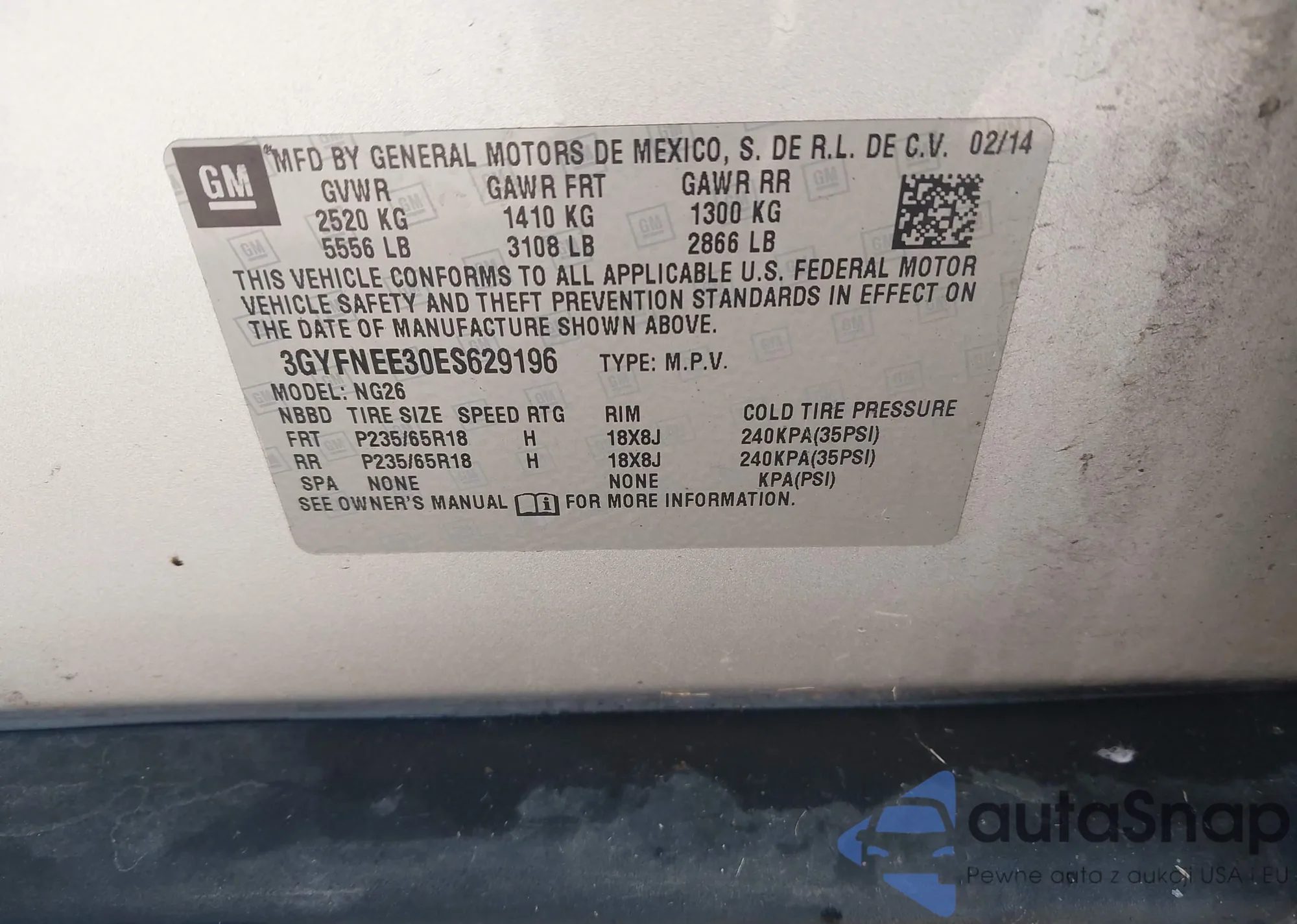 LOT: 43565099 VIN: 3GYFNEE30ES629196