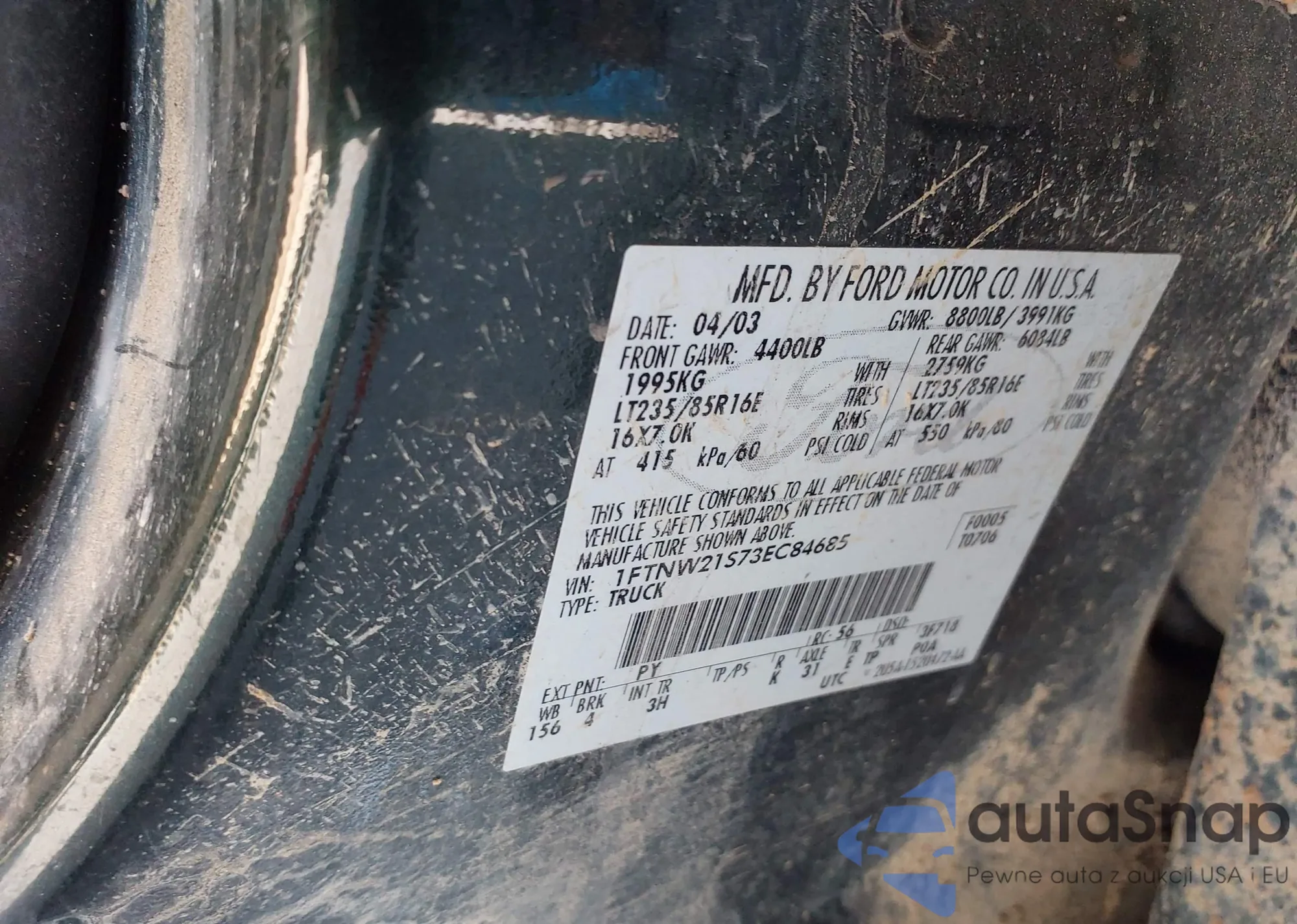 LOT: 43663918 VIN: 1FTNW21S73EC84685