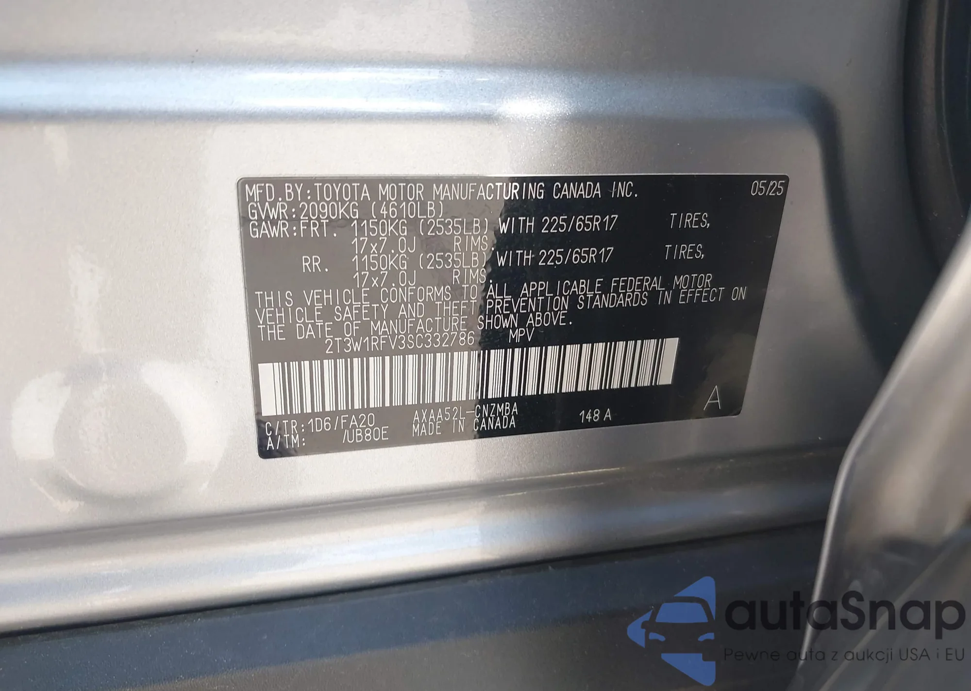 LOT: 43329040 VIN: 2T3W1RFV3SC332786