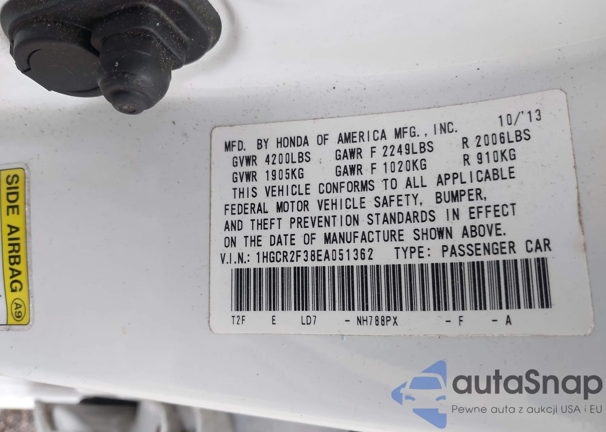 LOT: 43332589 VIN: 1HGCR2F38EA051362