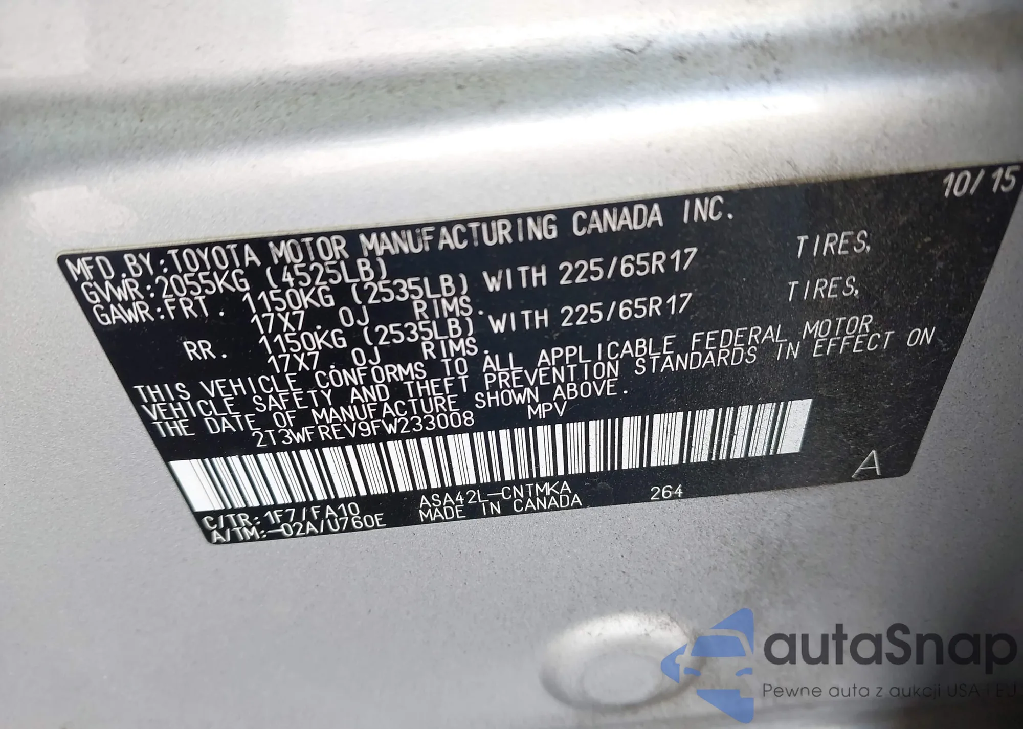 LOT: 43530203 VIN: 2T3WFREV9FW233008