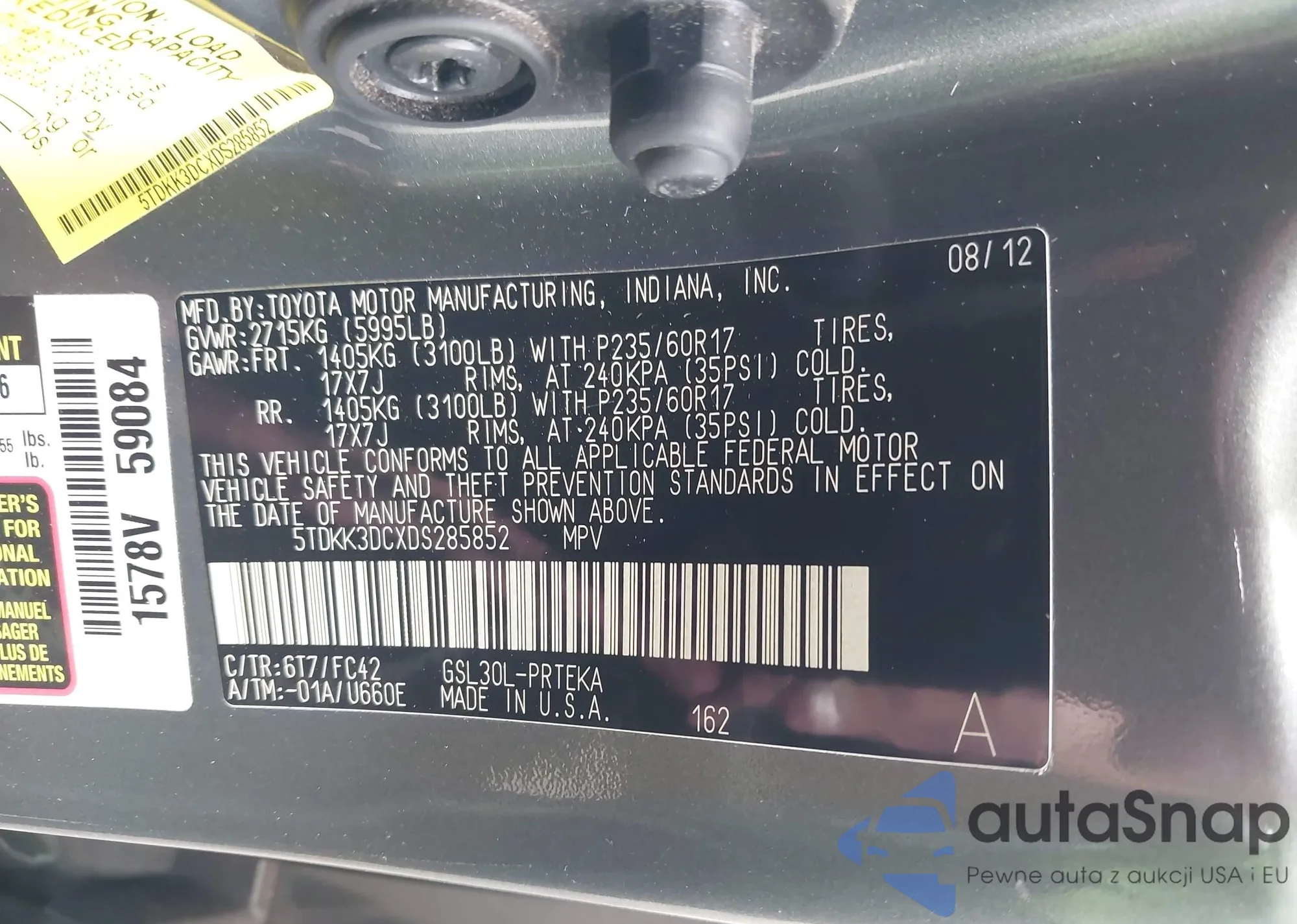 • VIN 4T1BF1FK8DU681220