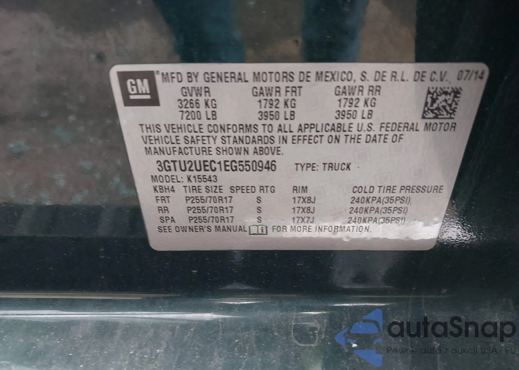 LOT: 43244223 VIN: 3GTU2UEC1EG550946