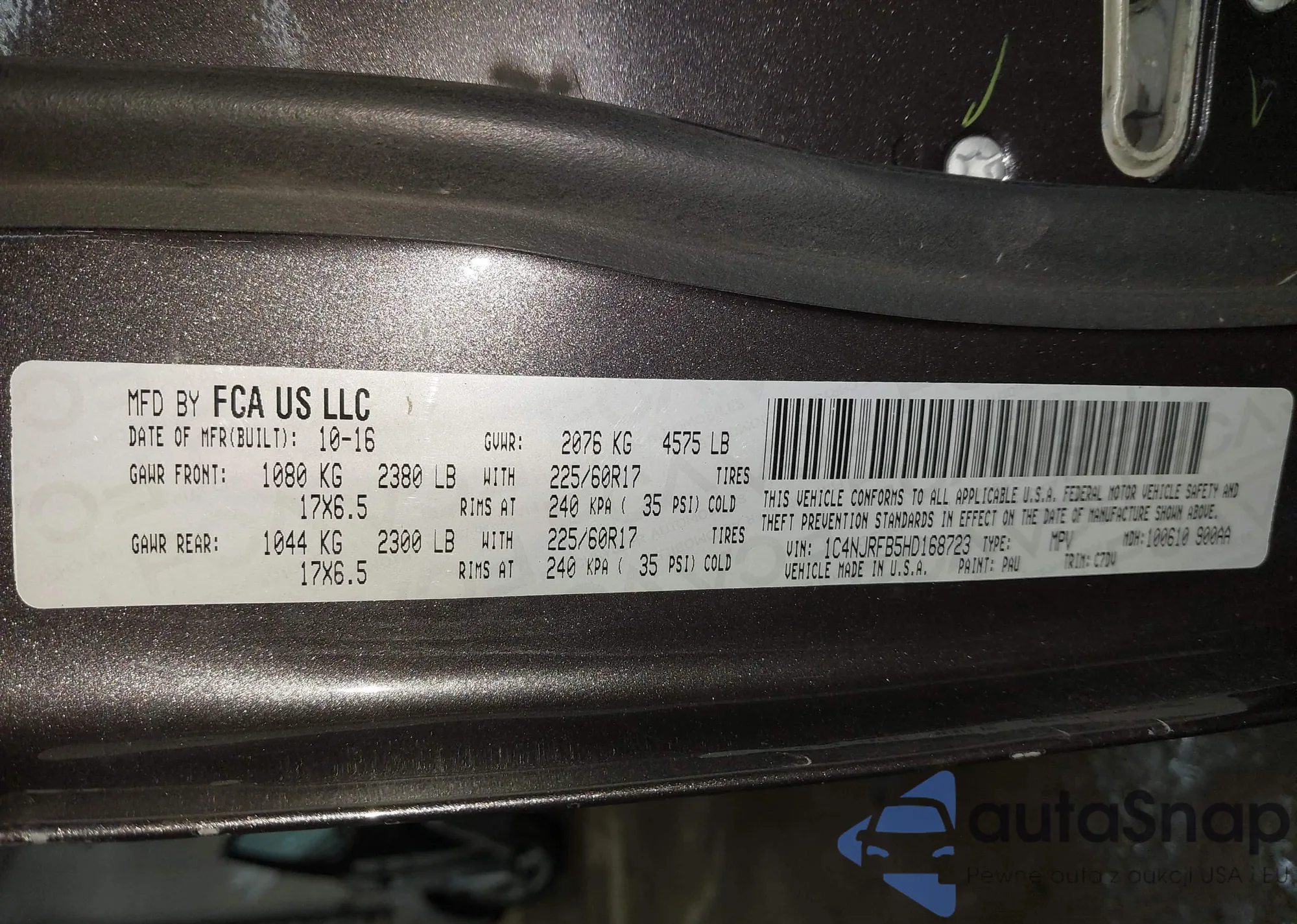 • VIN 1C4NJRFB5HD168723