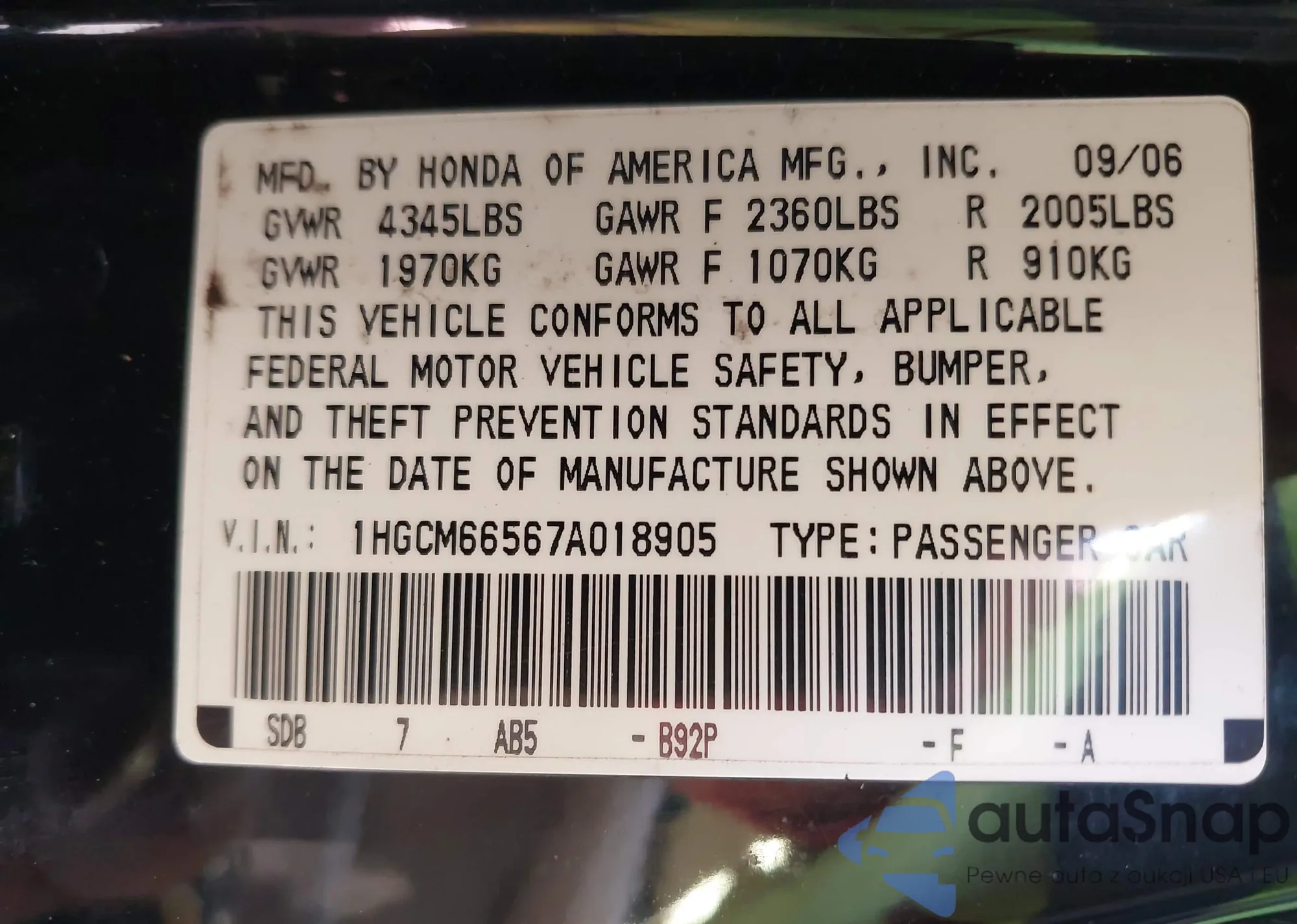 • VIN 1HGCM66567A018905