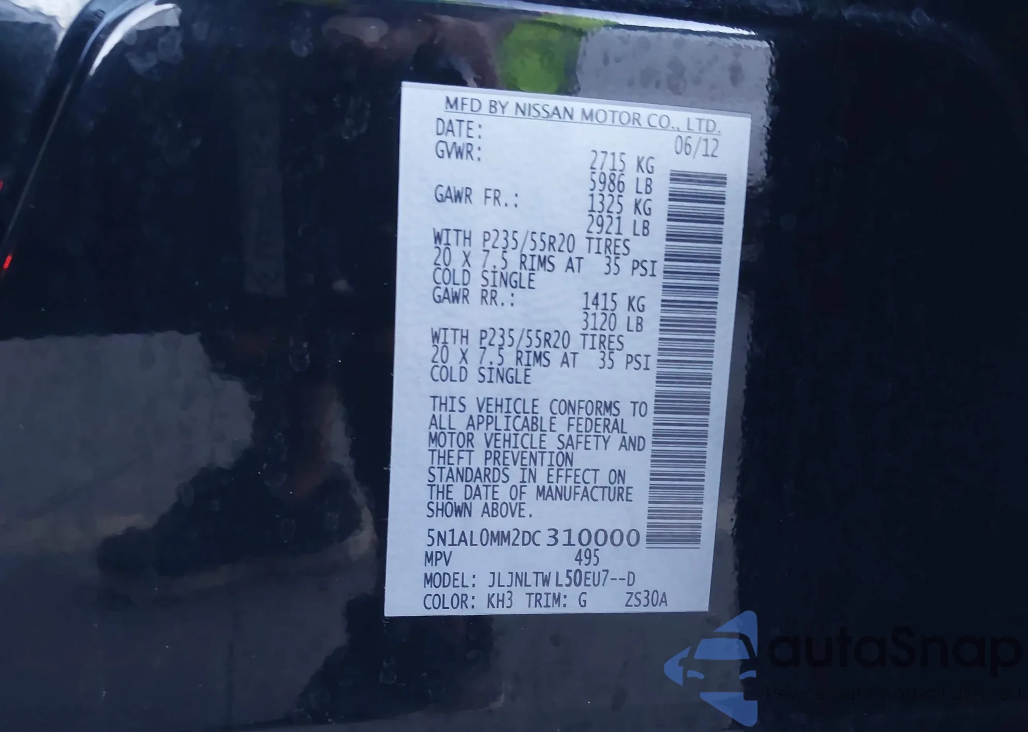 • VIN 5N1AL0MM2DC310000