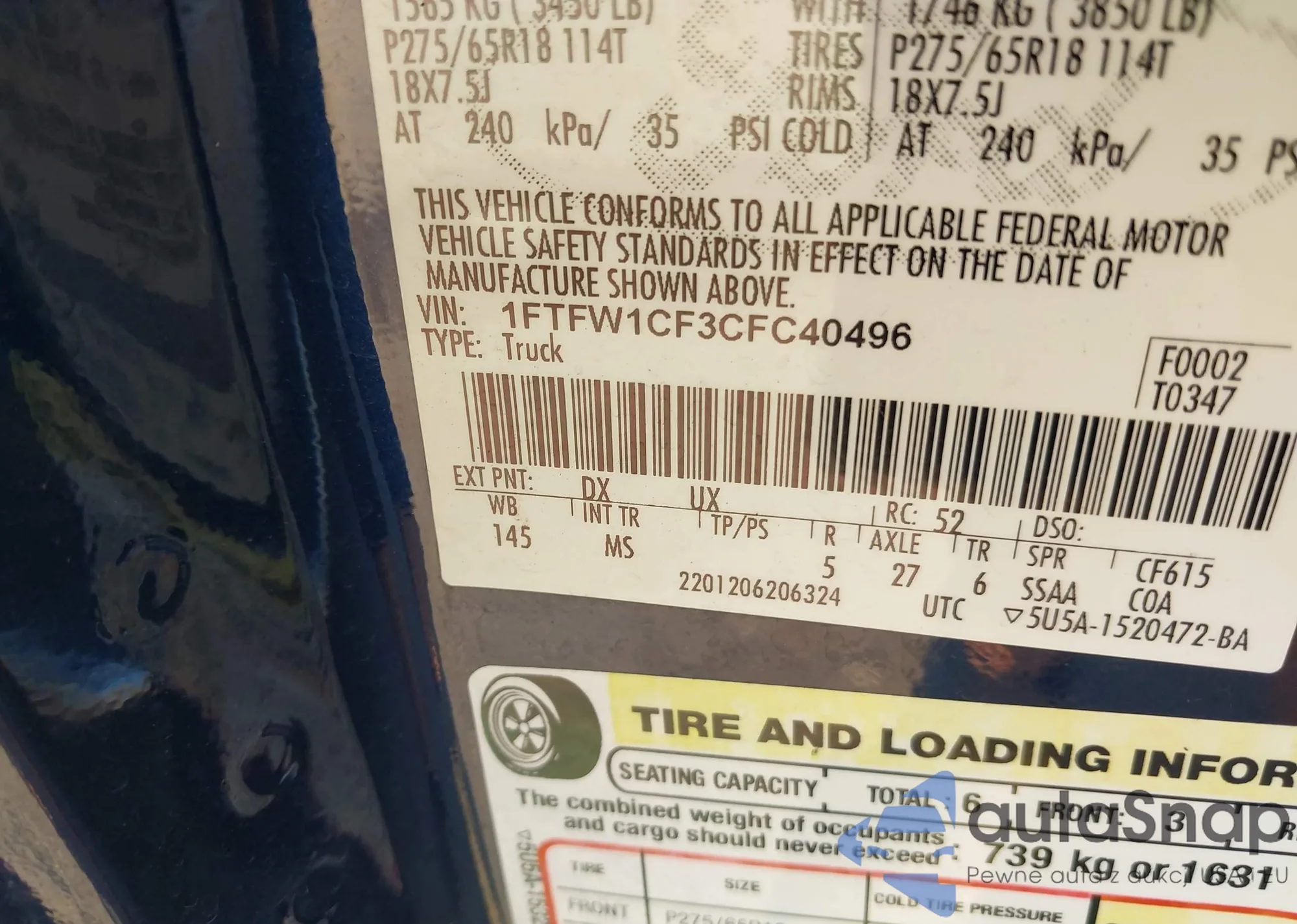 • VIN 1FTFW1CF3CFC40496