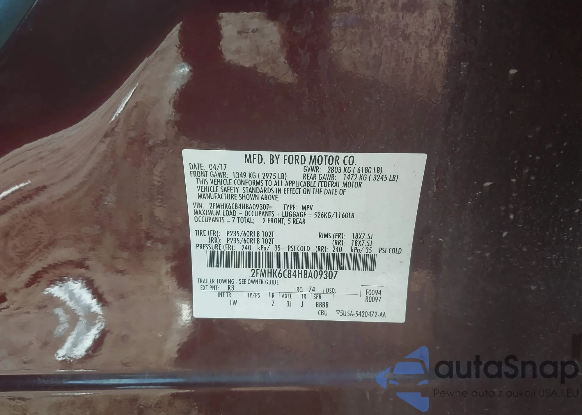 LOT: 43402919 VIN: 2FMHK6C84HBA09307
