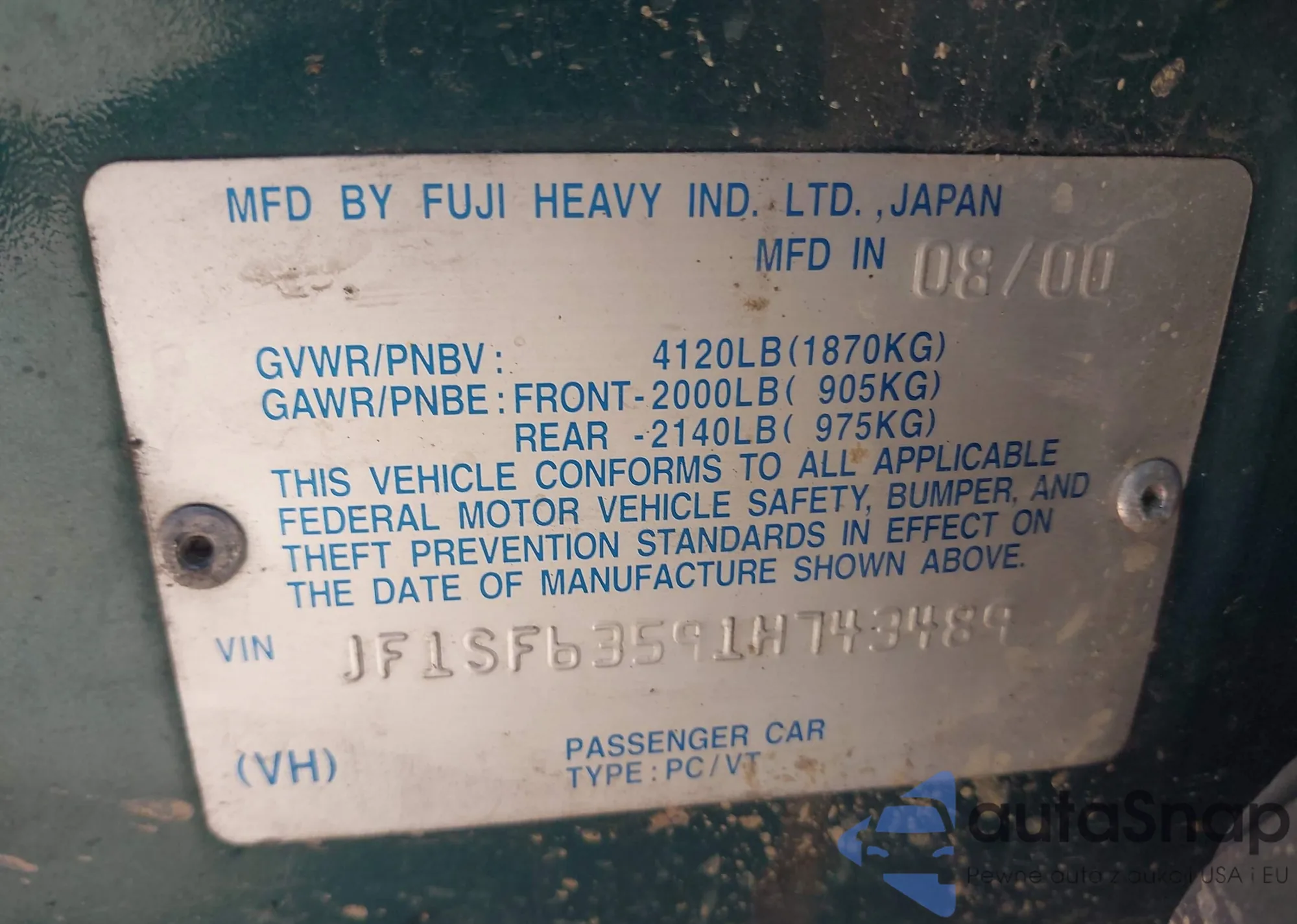 • VIN JF1SF63591H743489