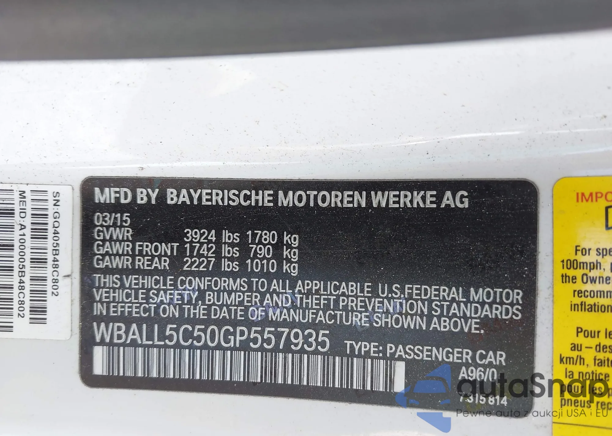 LOT: 43002211 VIN: WBAKB83539CY57544