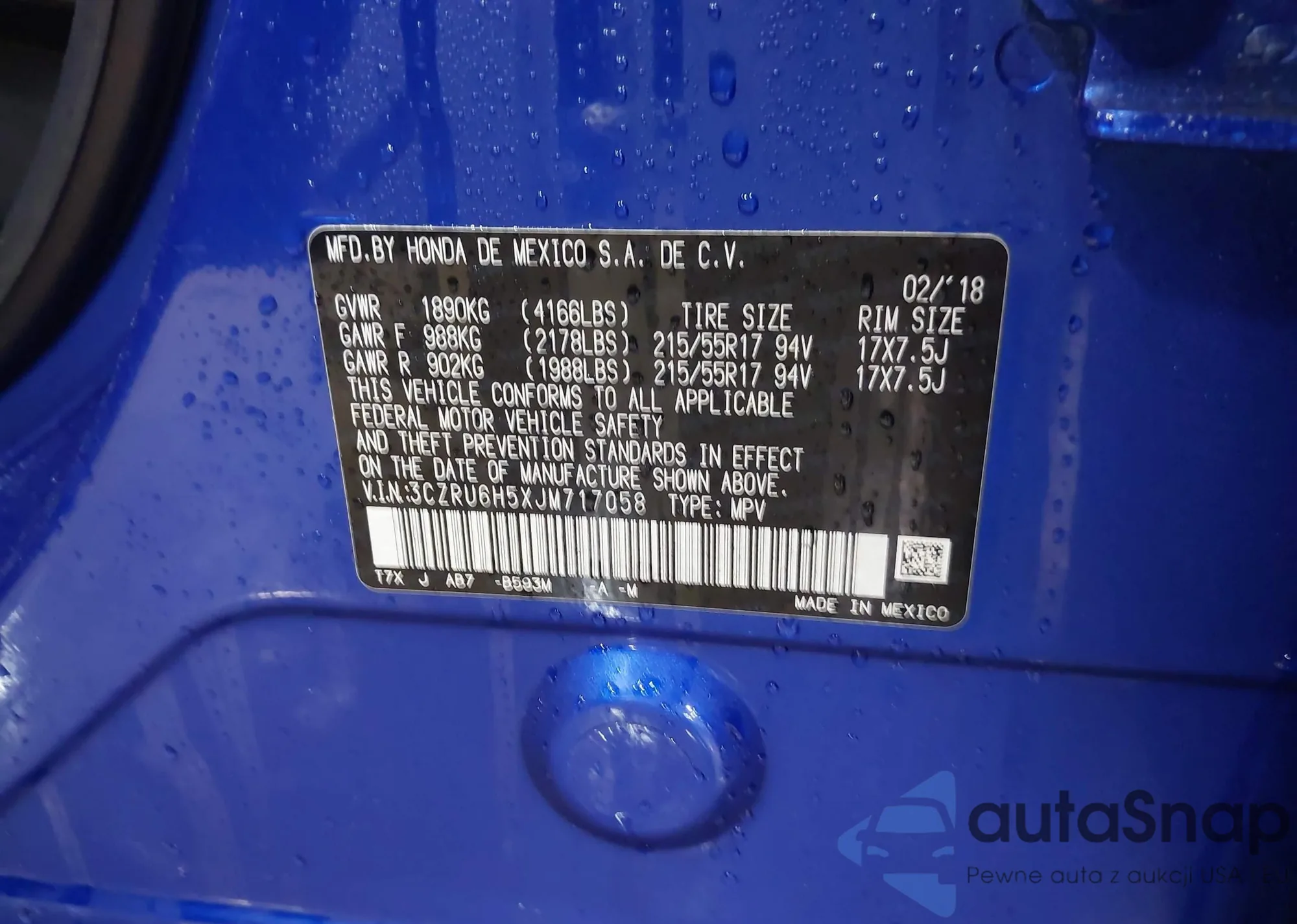 • VIN 5FNYG1H46SB037487