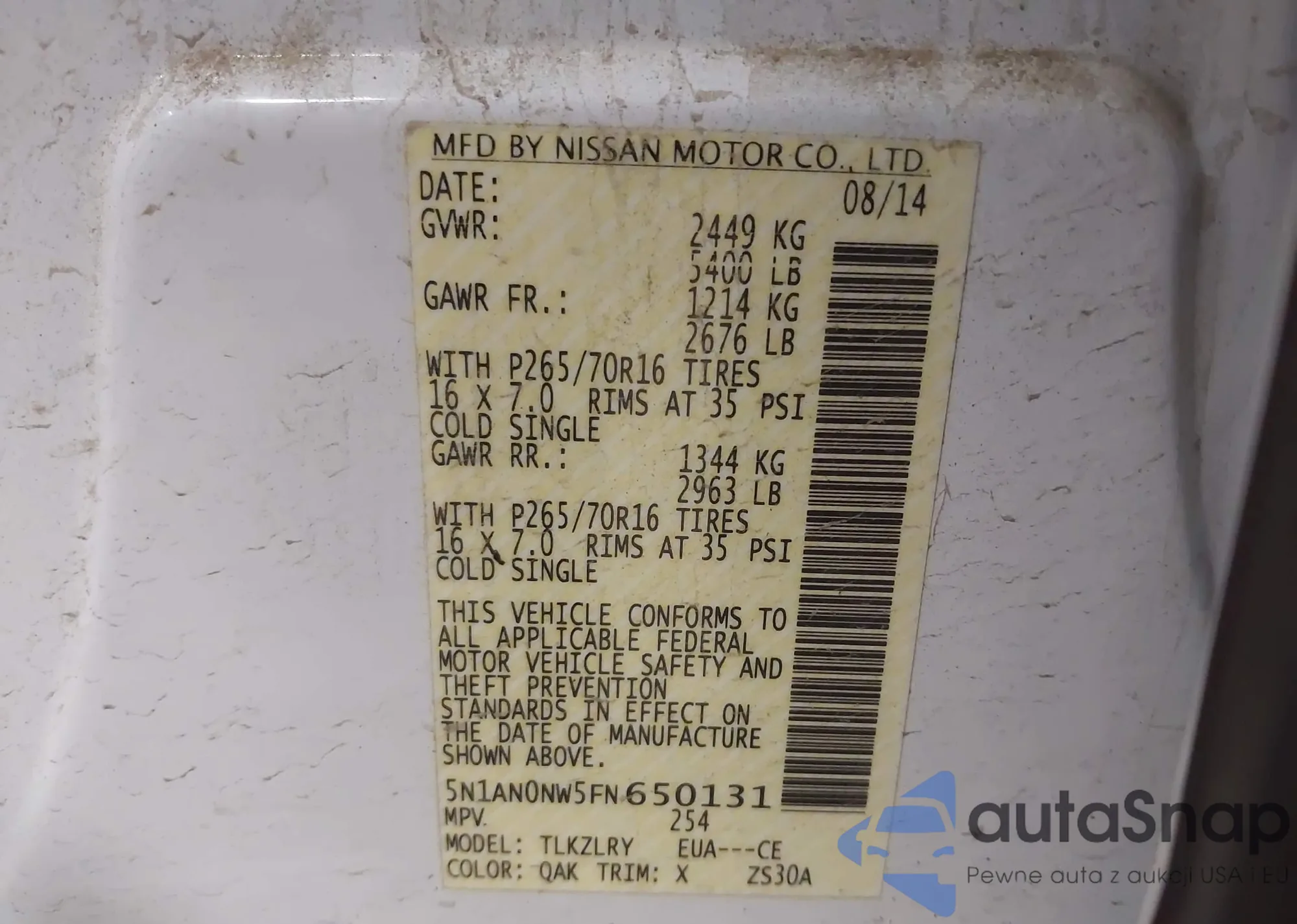 • VIN 5N1AN0NW5FN650131