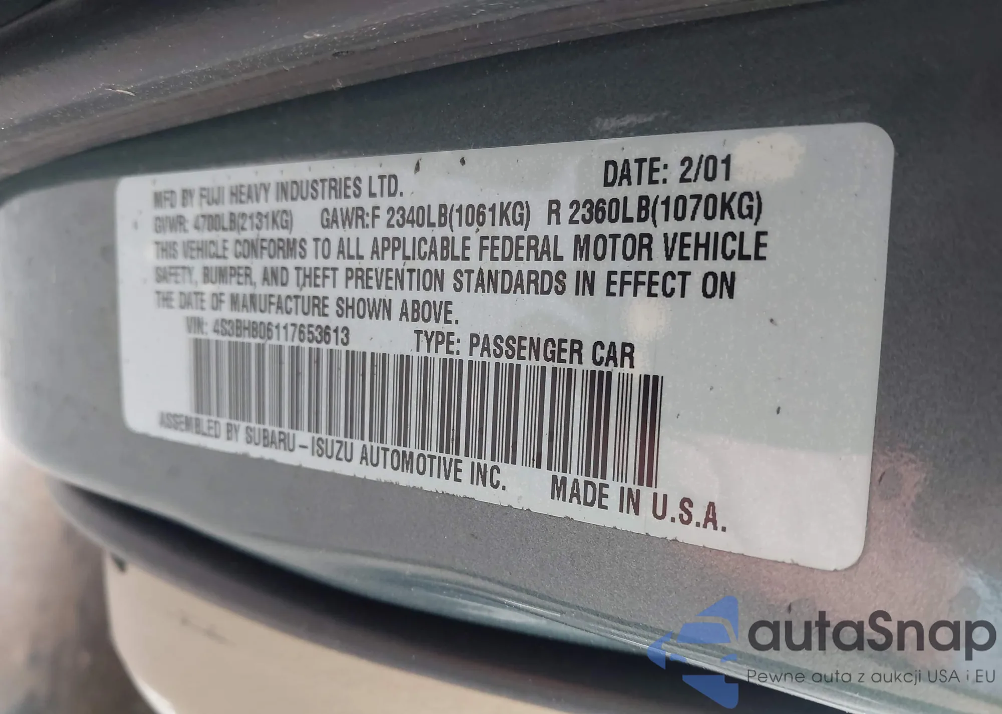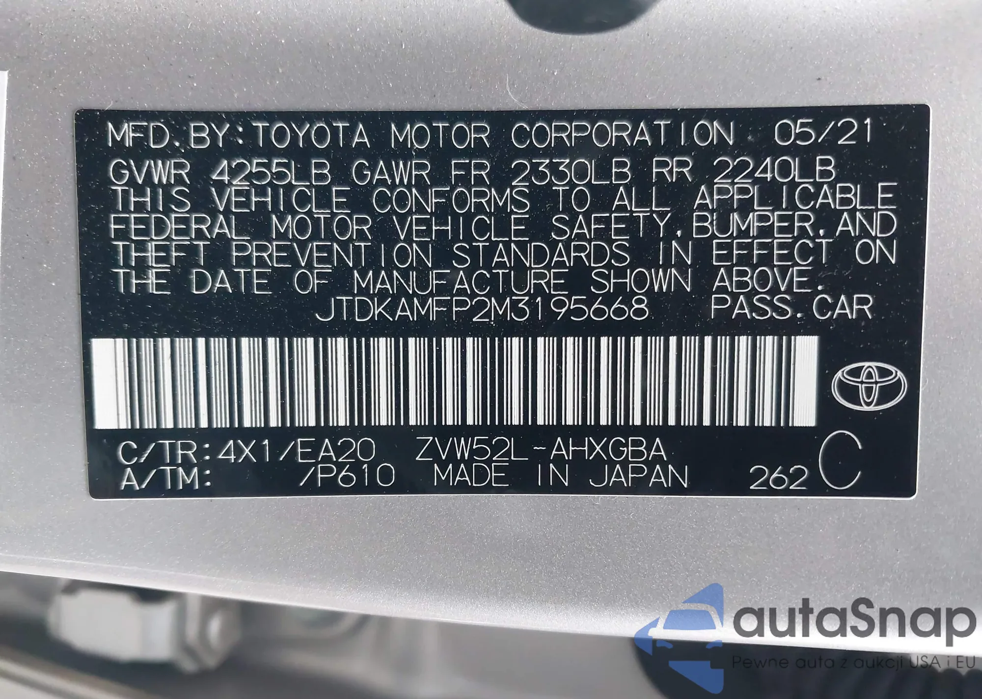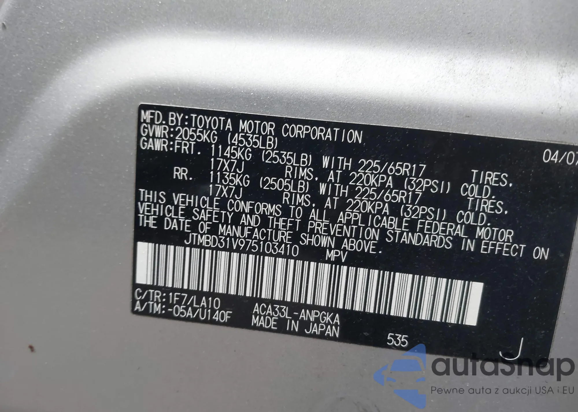 LOT: 43560219 VIN: JTMBD31V975103410