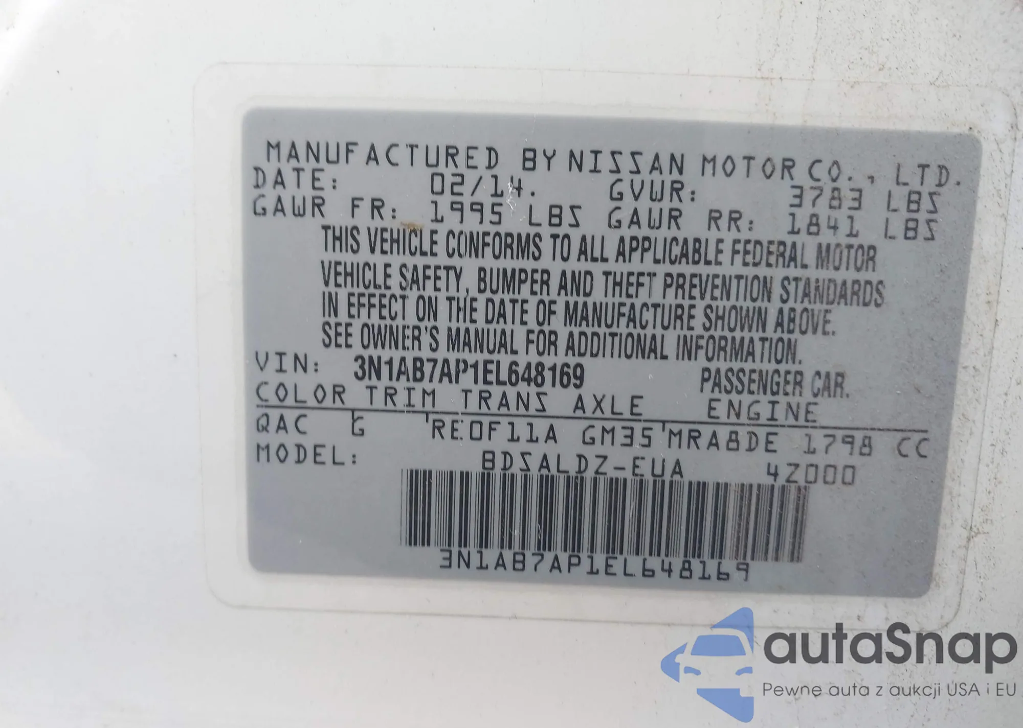 LOT: 43633500 VIN: JN1BV7AR3EM688417