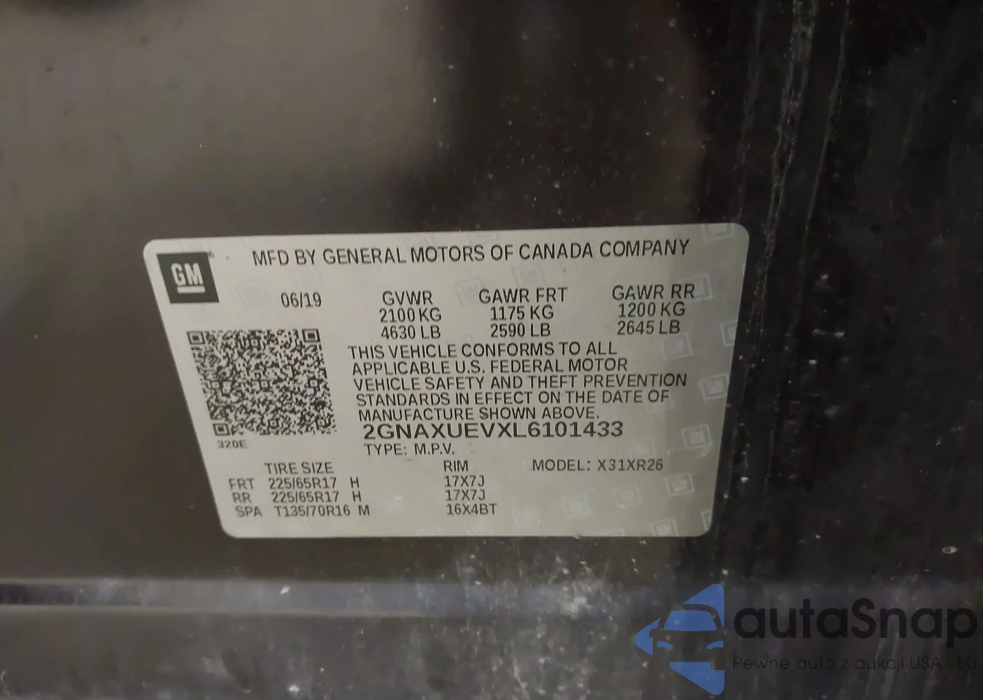 • VIN 2GNAXUEVXL6101433