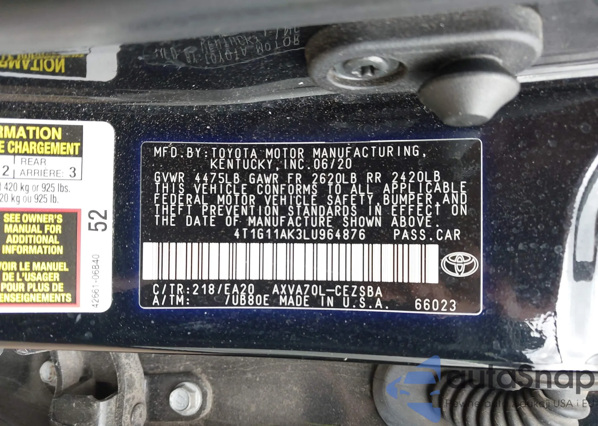 LOT: 43304137 VIN: 4T1G11AK3LU964876