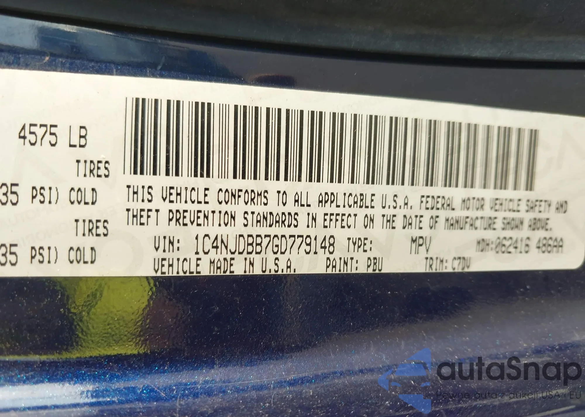 • VIN 3VW4T7AU0GM047505