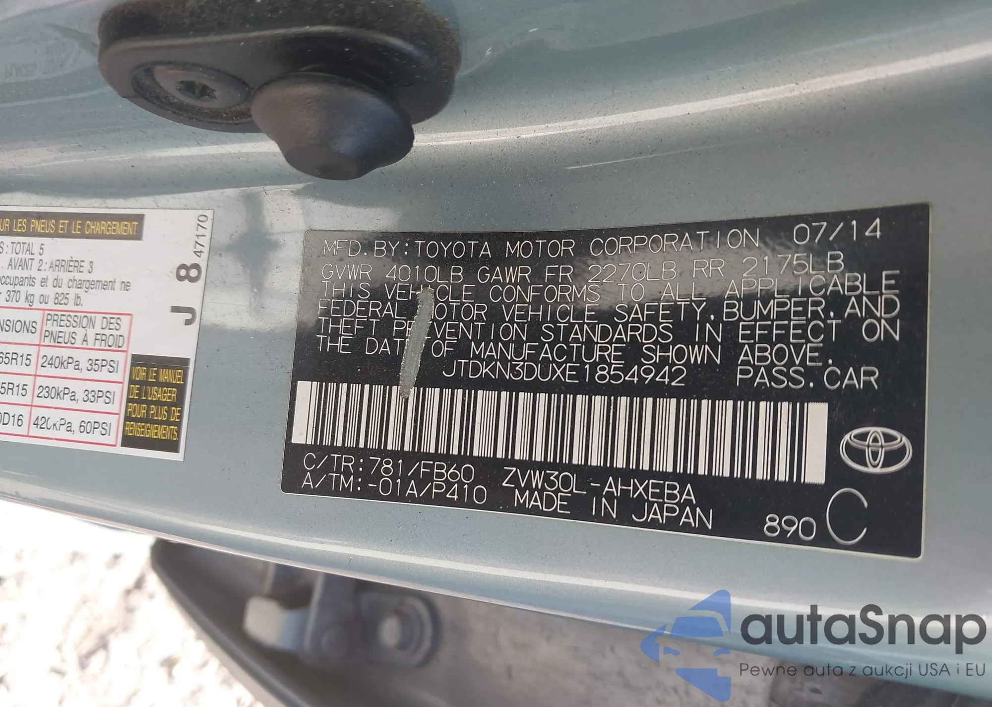 • VIN JTDKN3DUXE1854942