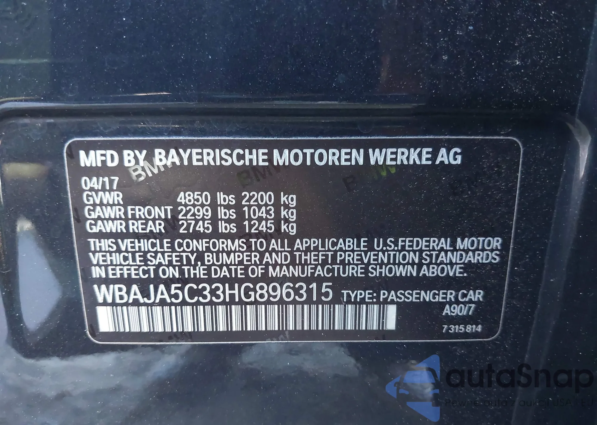 • VIN WBAJA5C33HG896315