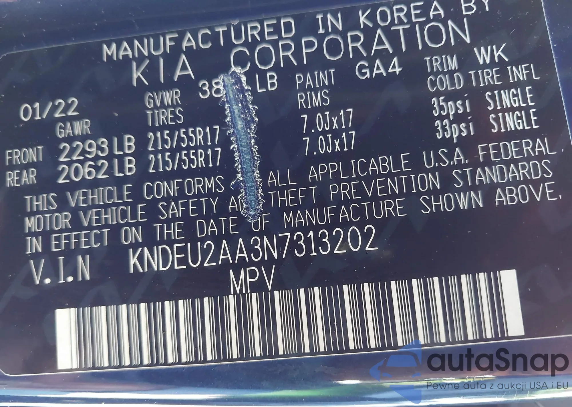 LOT: 43278348 VIN: WD4PF1CD4KP143485