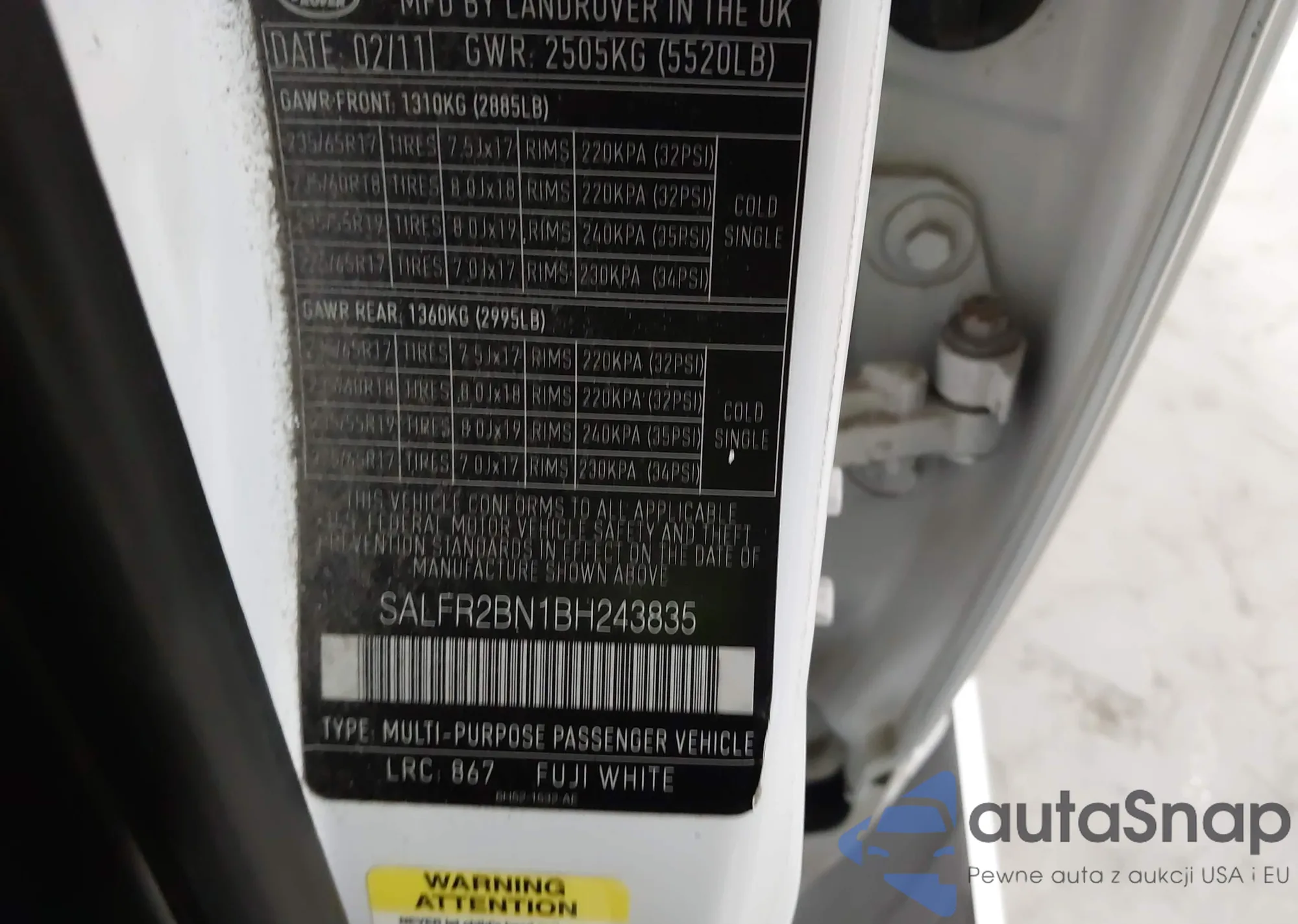 • VIN SALFR2BN1BH243835