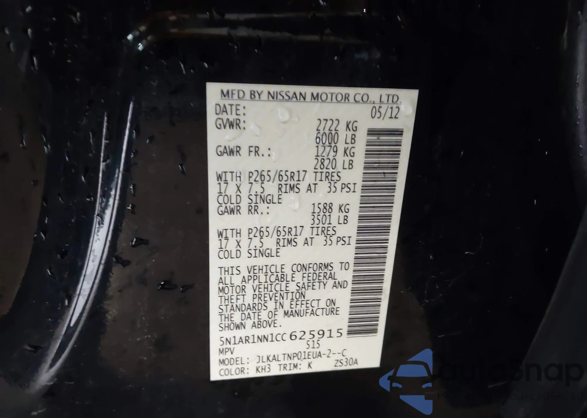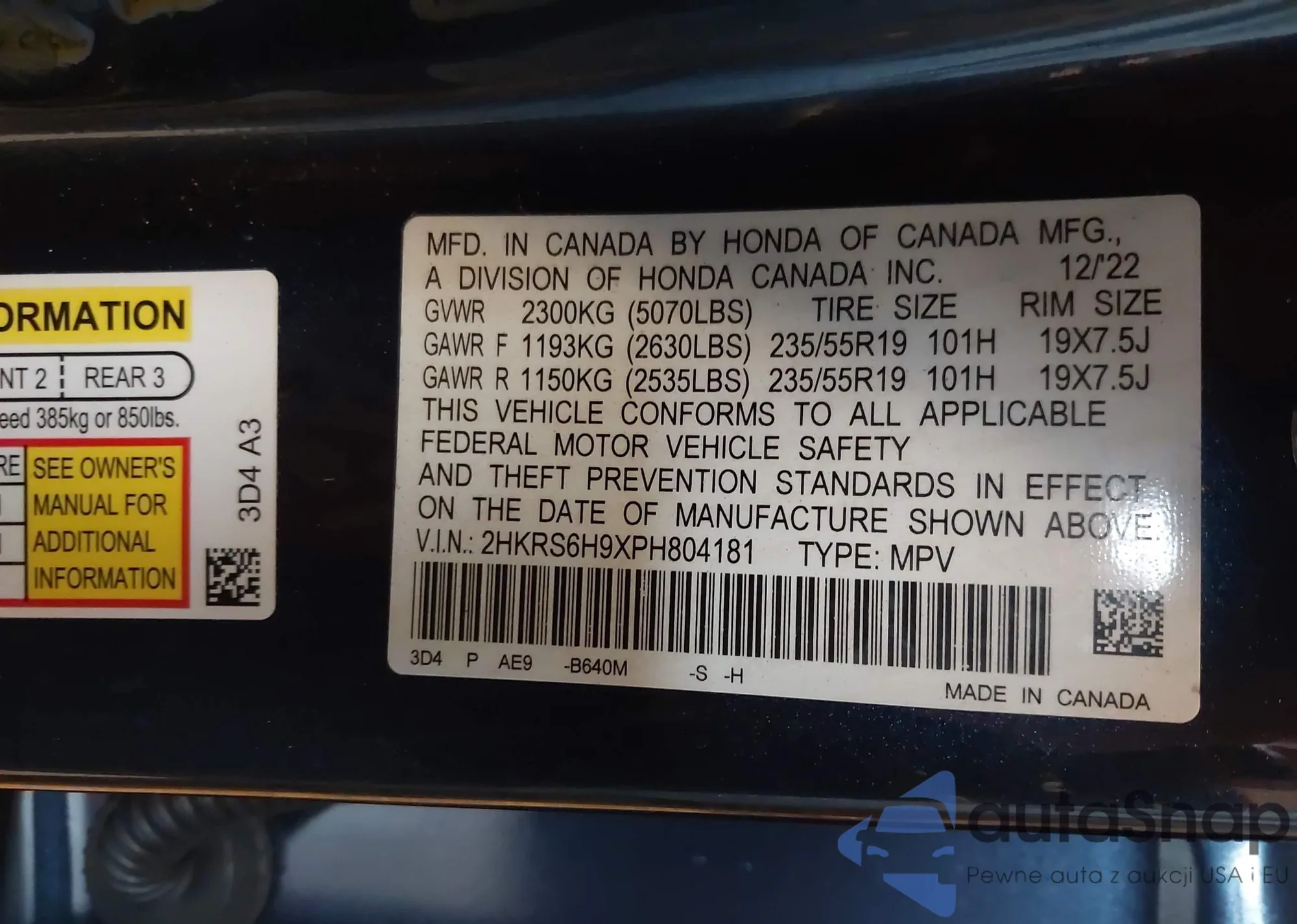 • VIN 2HKRS6H9XPH804181