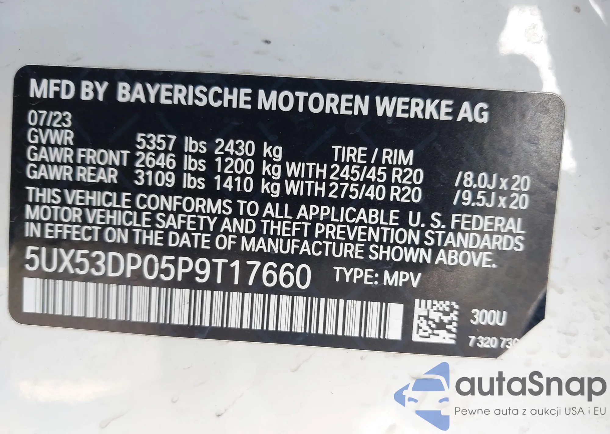 • VIN 5UX53DP05P9T17660