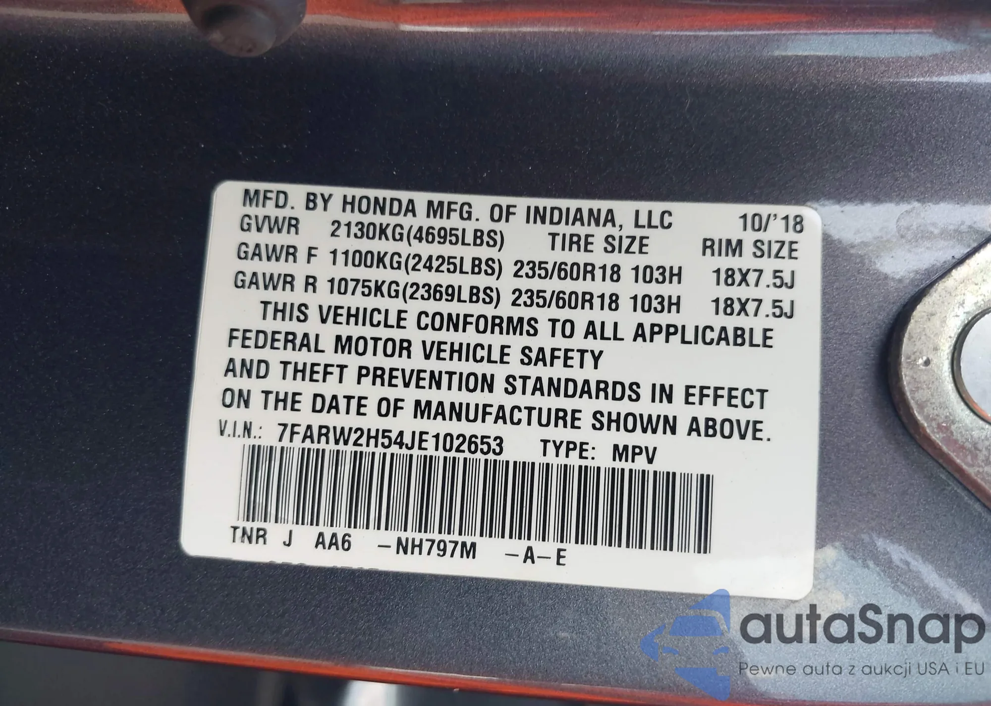 • VIN 7FARW2H54JE102653