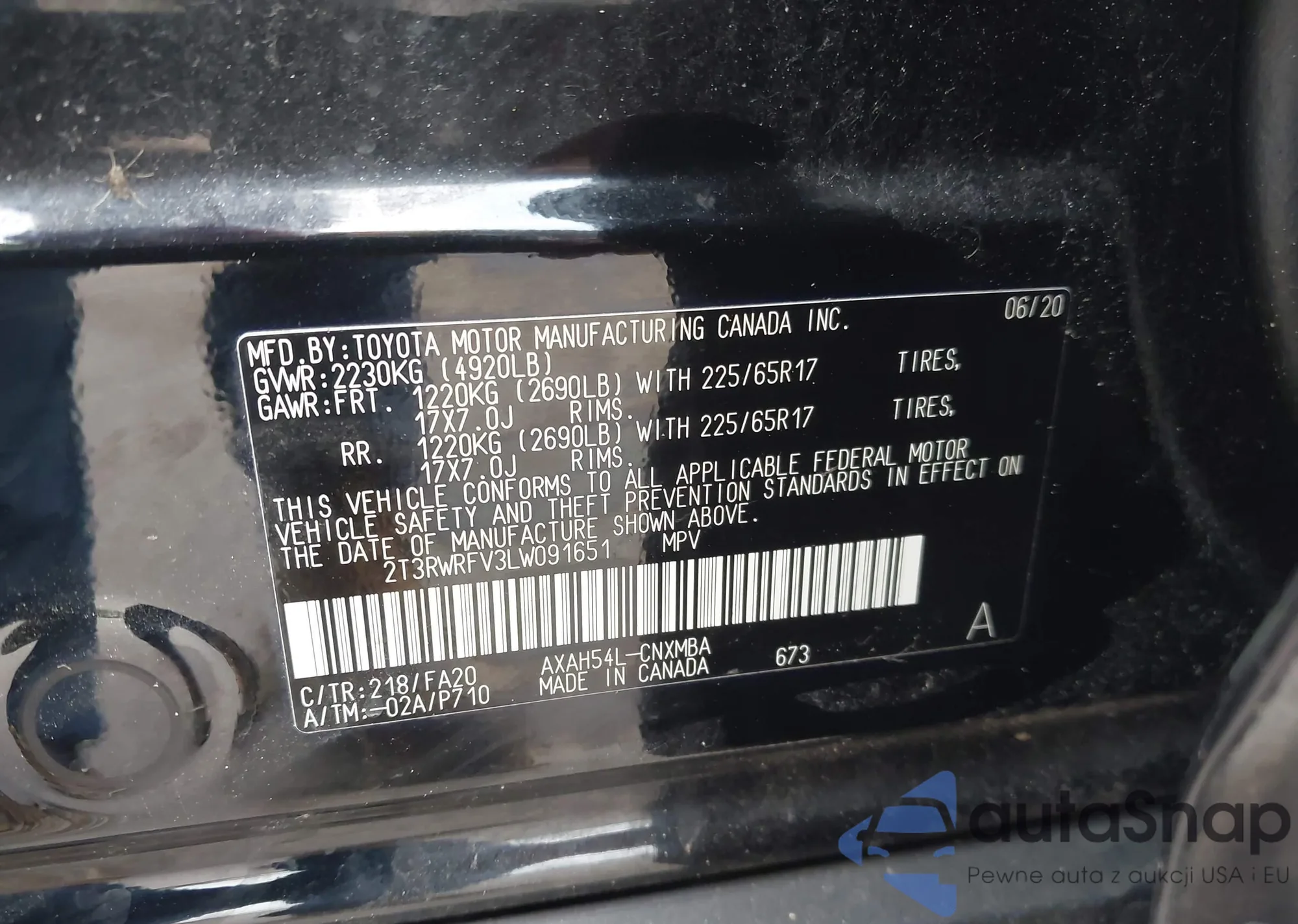LOT: 43434875 VIN: 2T3WFREV0JW486128