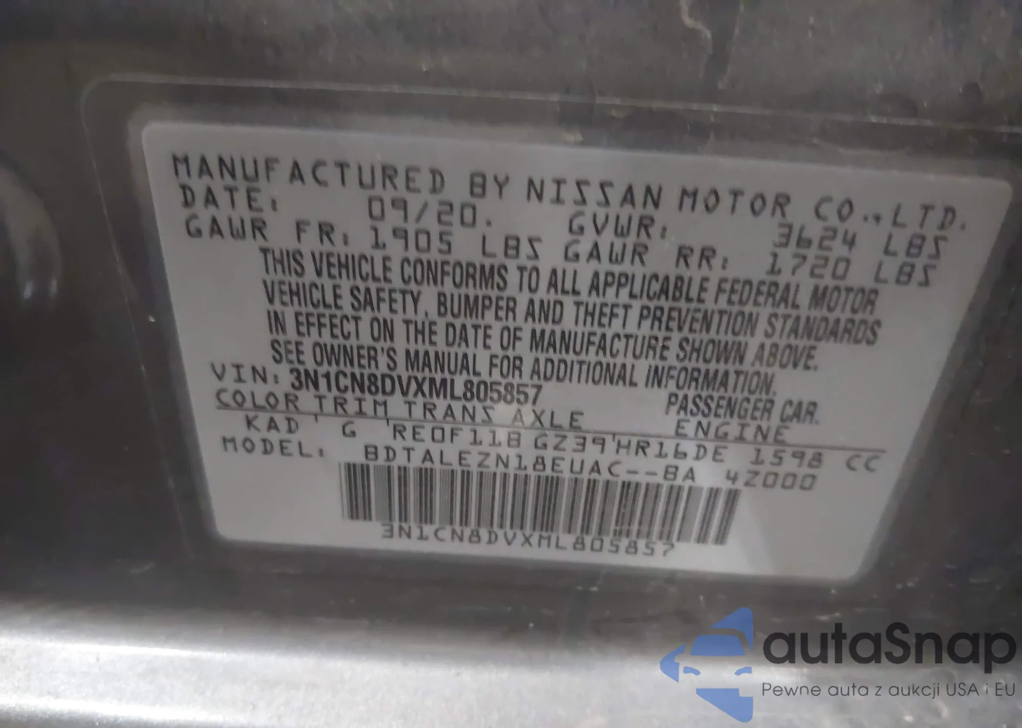 • VIN 3N1CN8DVXML805857