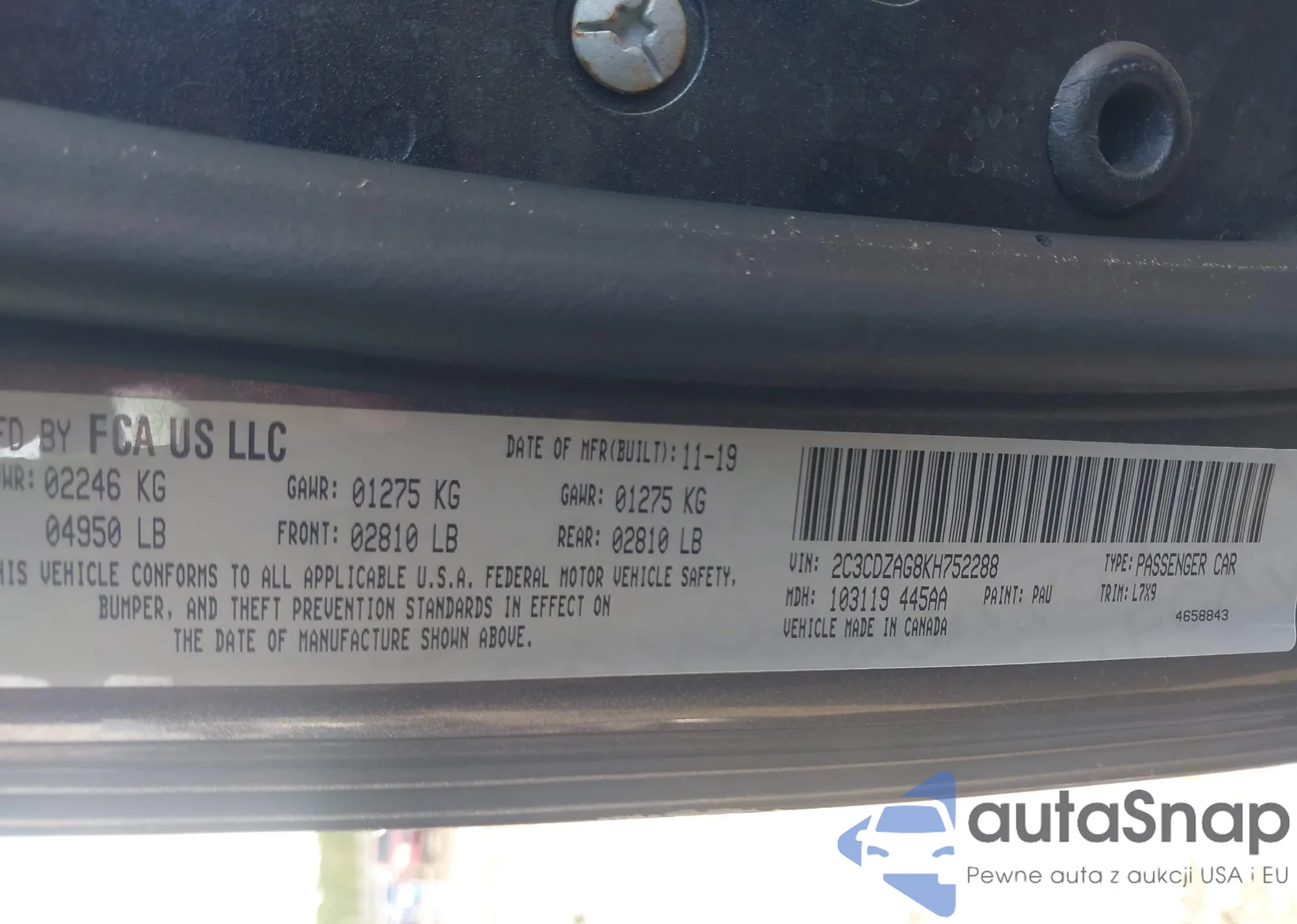 • VIN 2C3CDZAG8KH752288